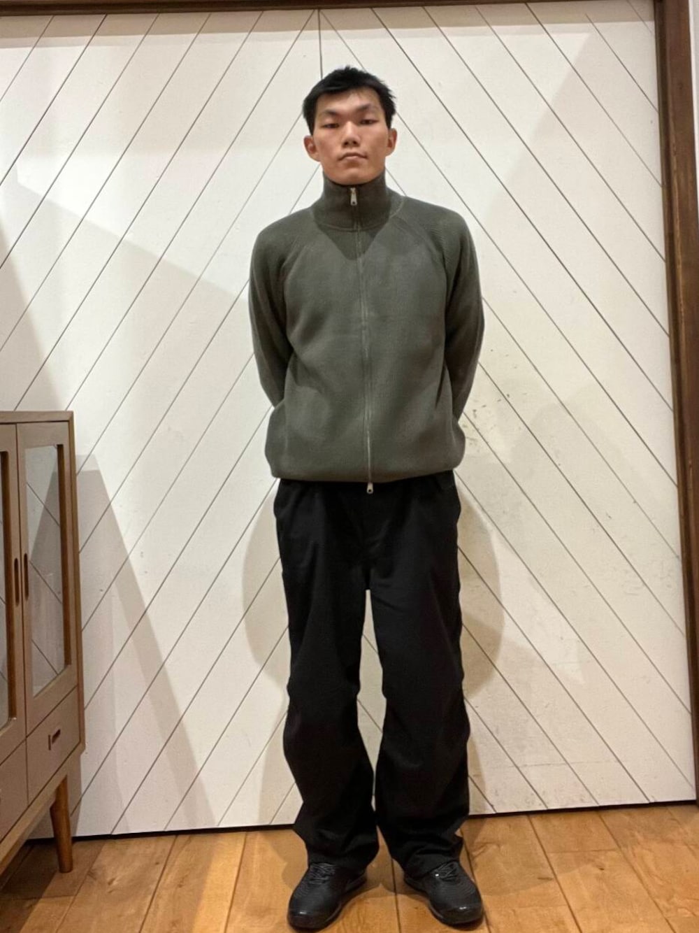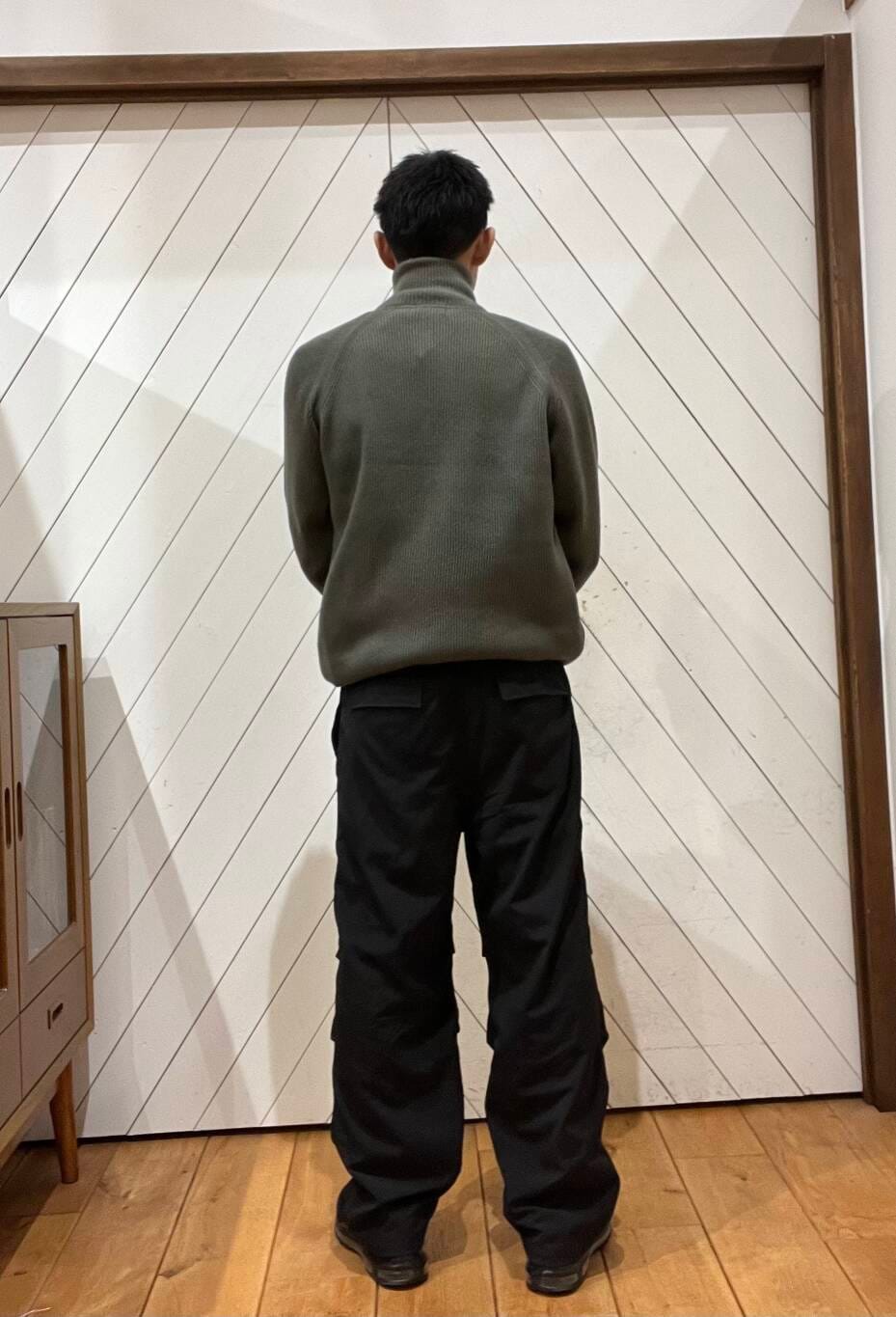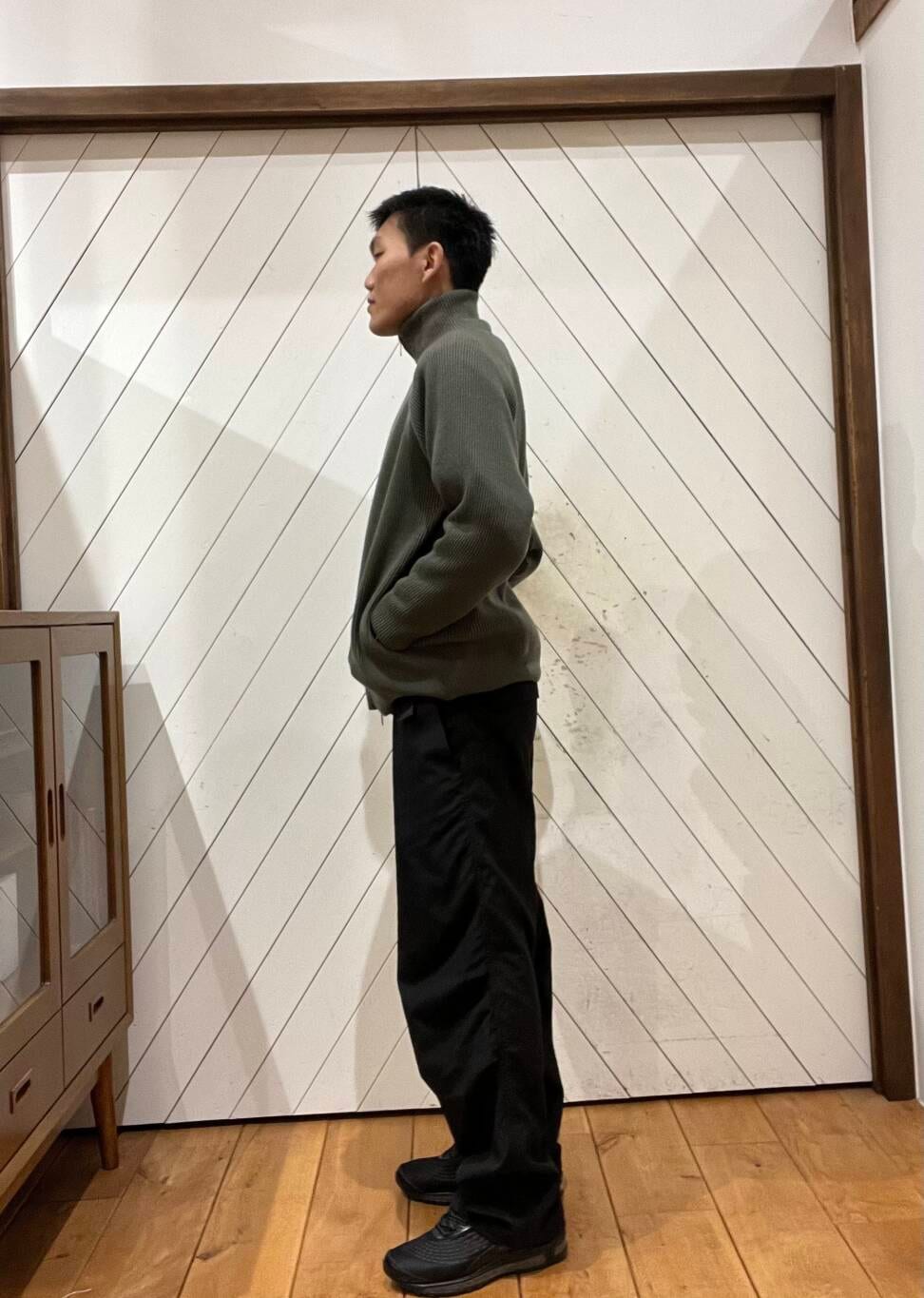 ドライバーズニットは身幅ゆったりですが、丈が短めでメリハリのあるシルエットです。