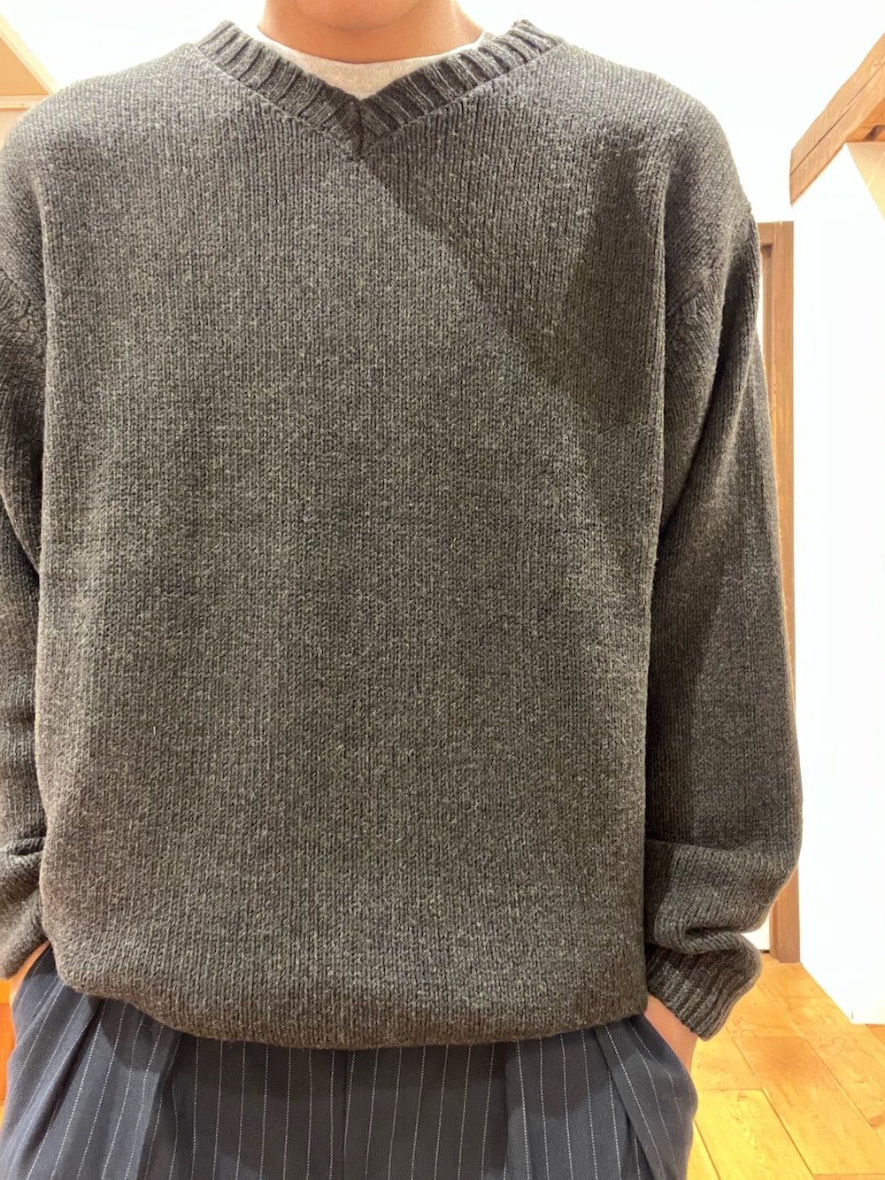 浅めのVネックがポイントでインナーとのレイアードスタイルでこなれ感もだせます!