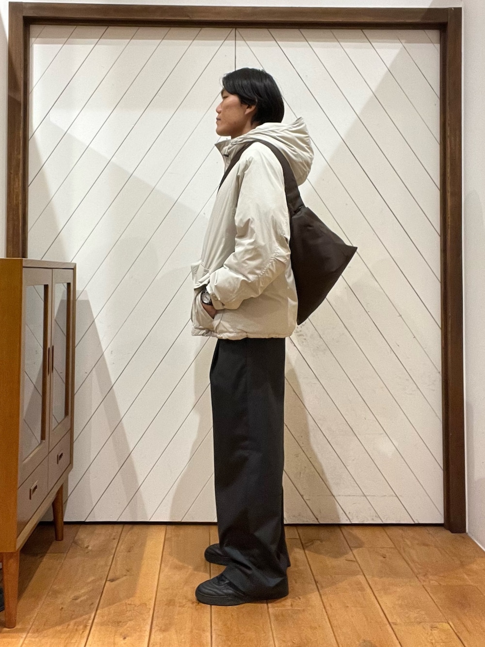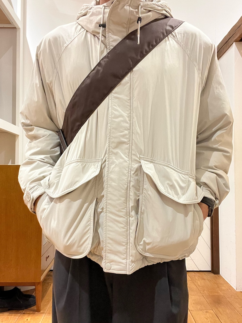 程よくゆとりをもたせることで中も着こみやすく、絶妙な着丈+シルエットでこなれ感も溢れます。