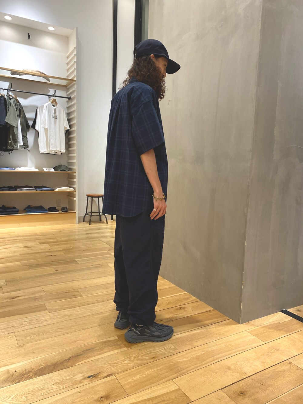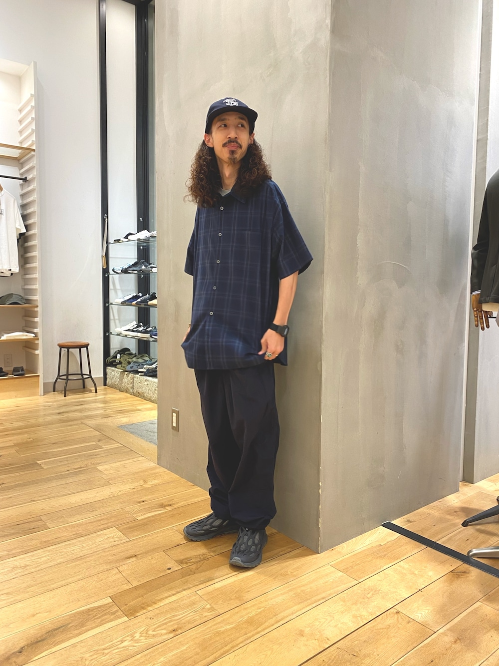 ナイロンのパンツはスポーティーな印象にまとめてます。ワイドなシルエットで動きやすいです。
