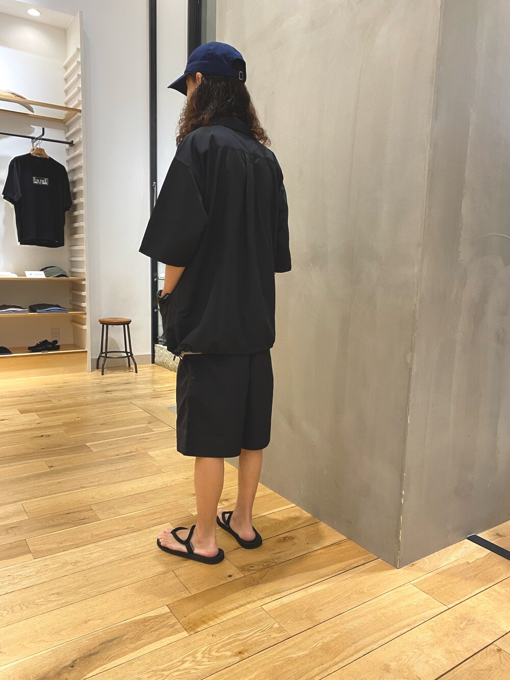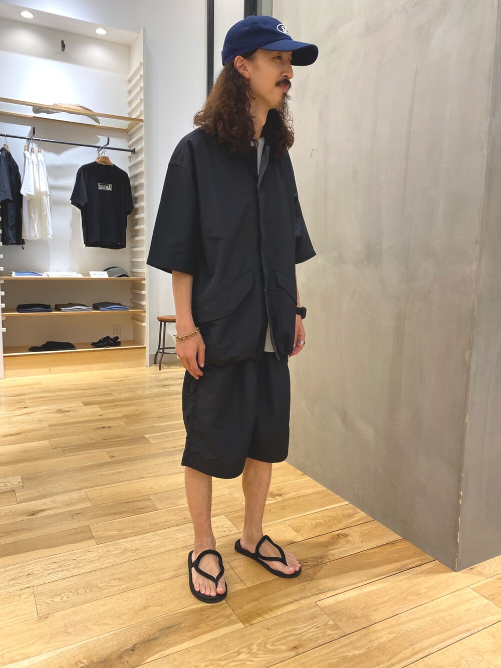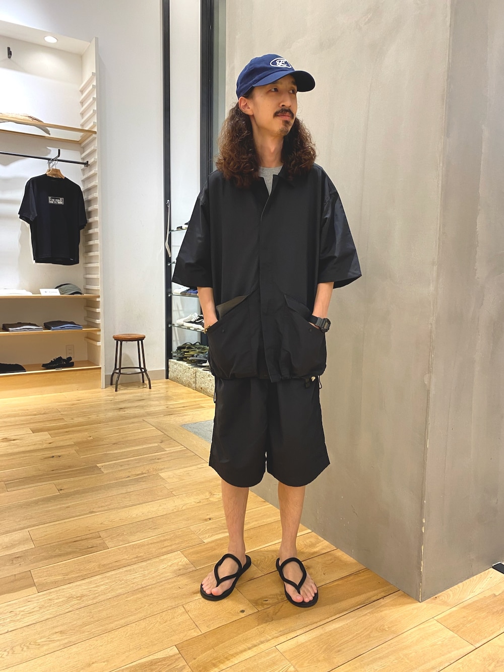 FOXFIRE別注シャツとショーツをセットアップで着用。程よくワイドなシルエットでオススメです。