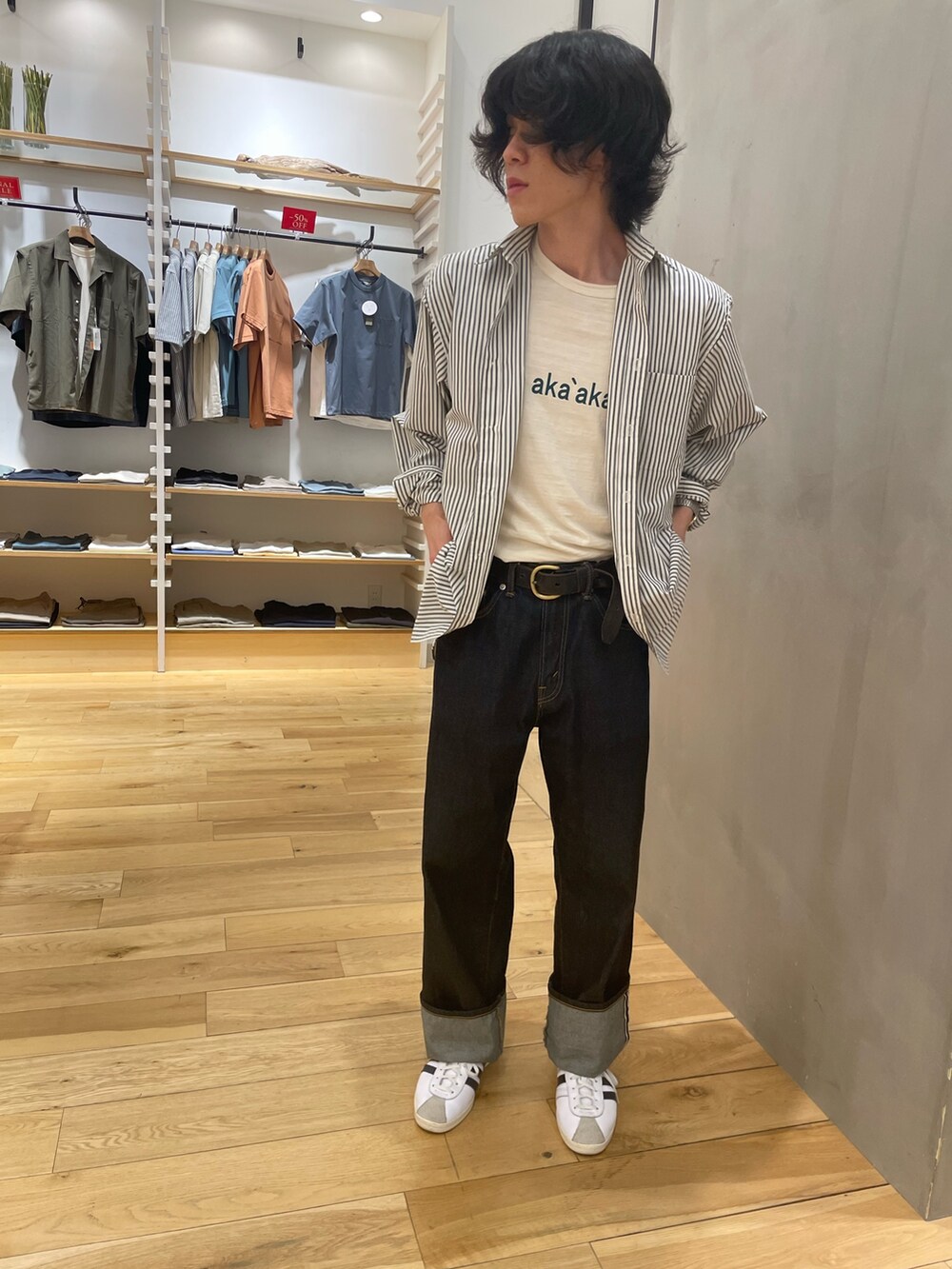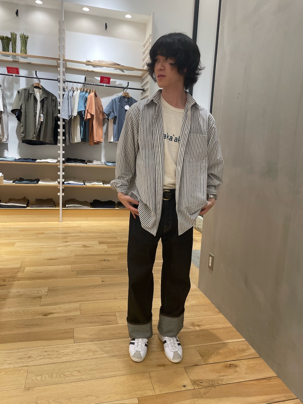 新作の「コットンタッチルーズストライプシャツ」で秋のシャツコーデを組みました。