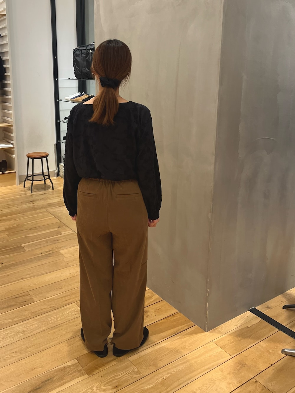 スウェードライクのF&Sのパンツを合わせて秋らしいコーデにしました。