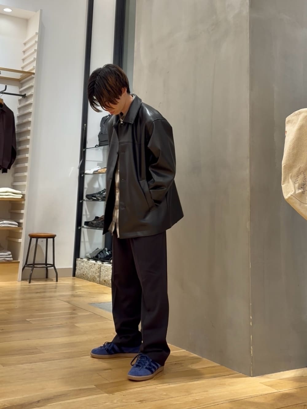 本革の価格高騰が激しいなか、チャレンジしやすい価格帯のフェイクレザーは初めてのレザーアイテムをご検討の方にオススメしたい一着です。