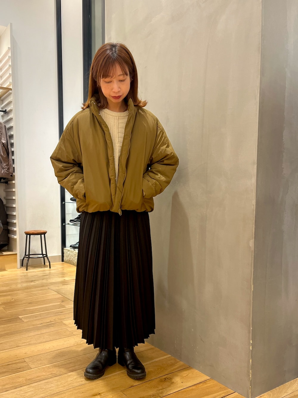 キレイめなプリーツスカートとカジュアルミックスさせるのがオススメコーデです!