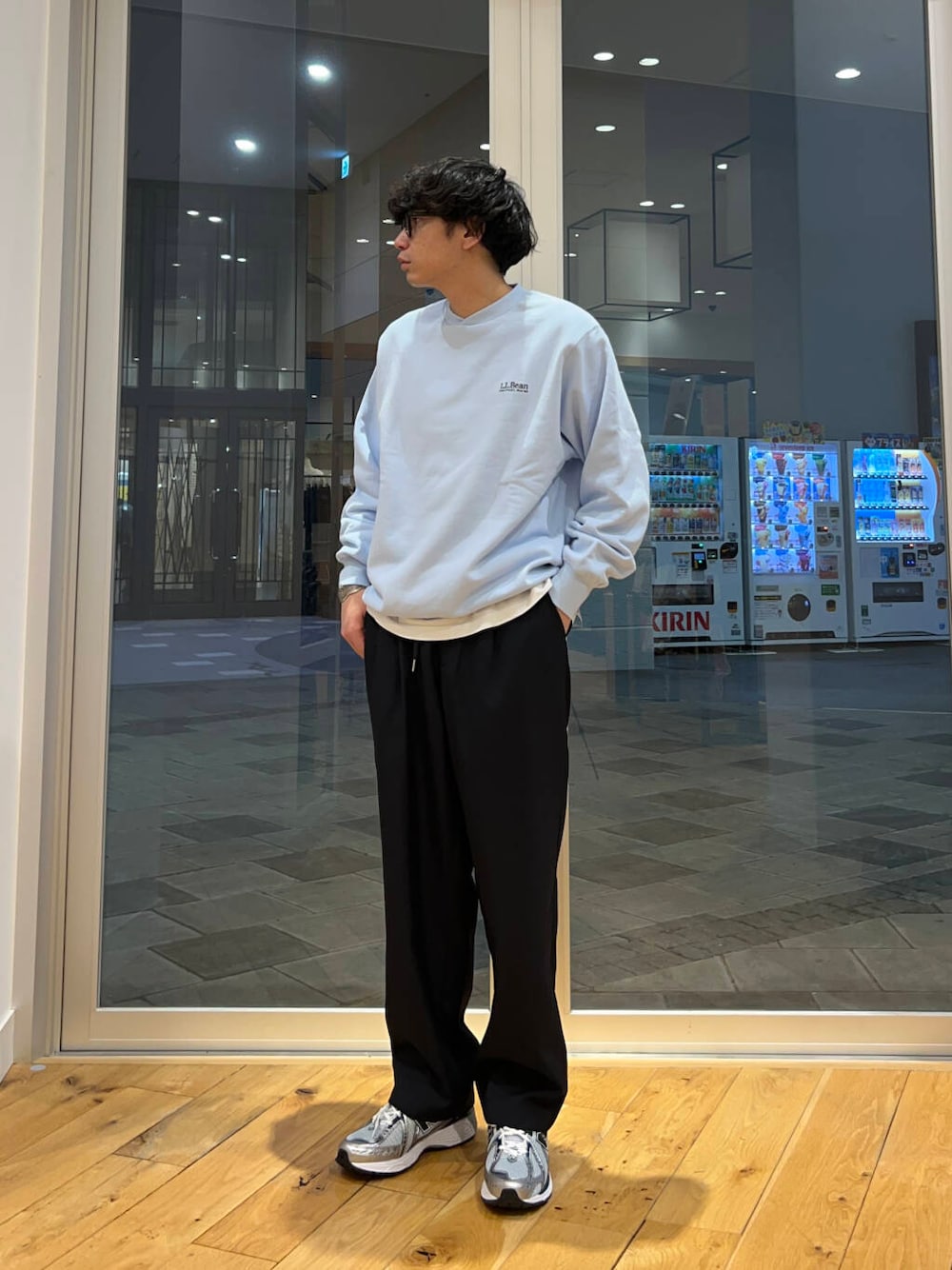 スウェットにクラックスでキレイめカジュアルスタイル。