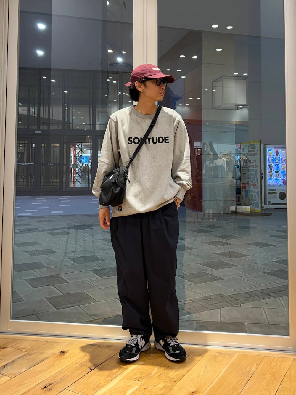 シンプルな装いなので小物プラスでオシャレ感を