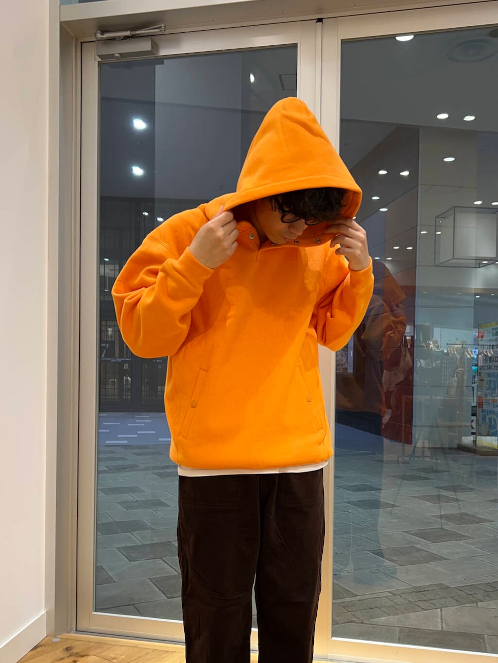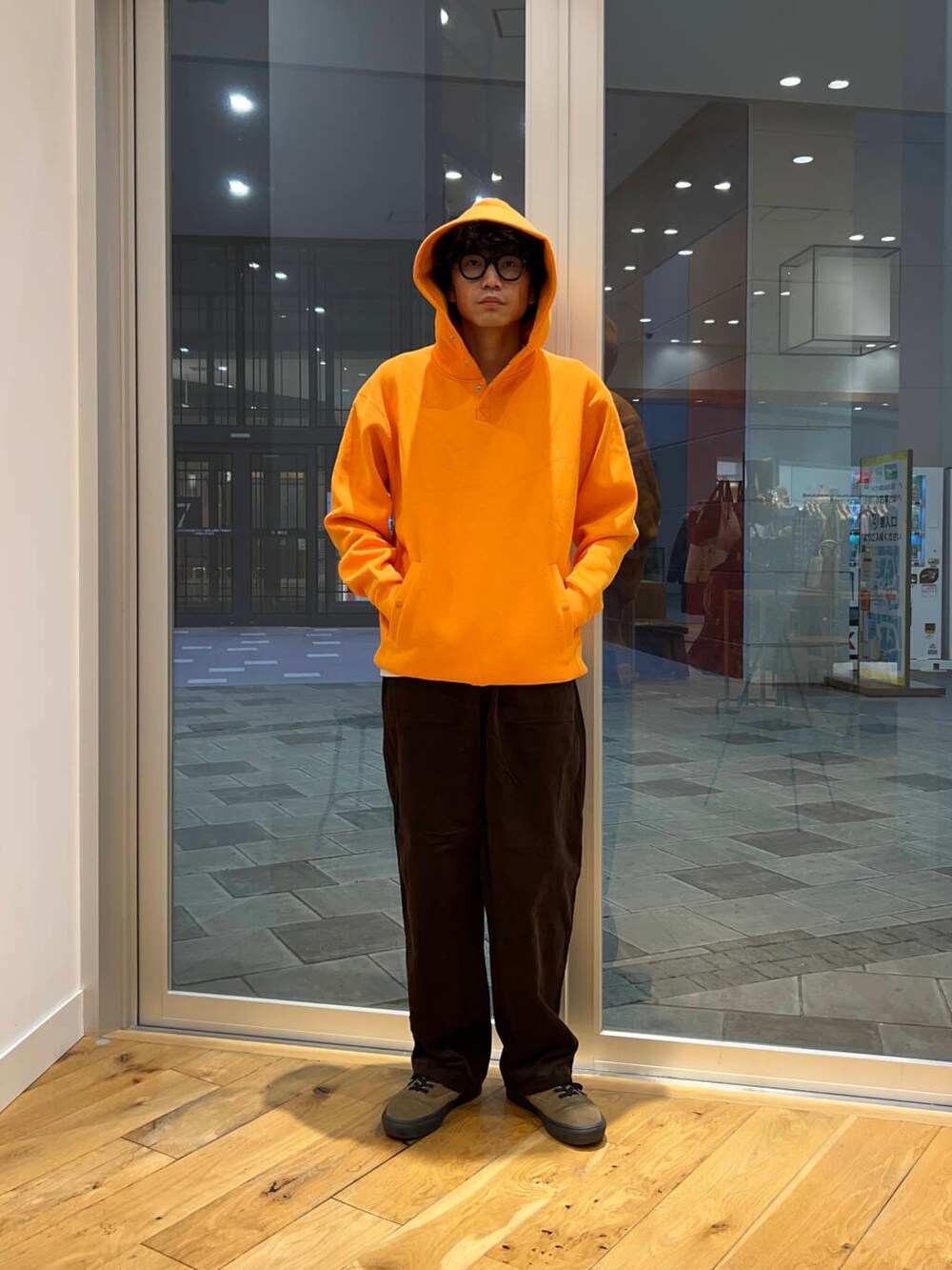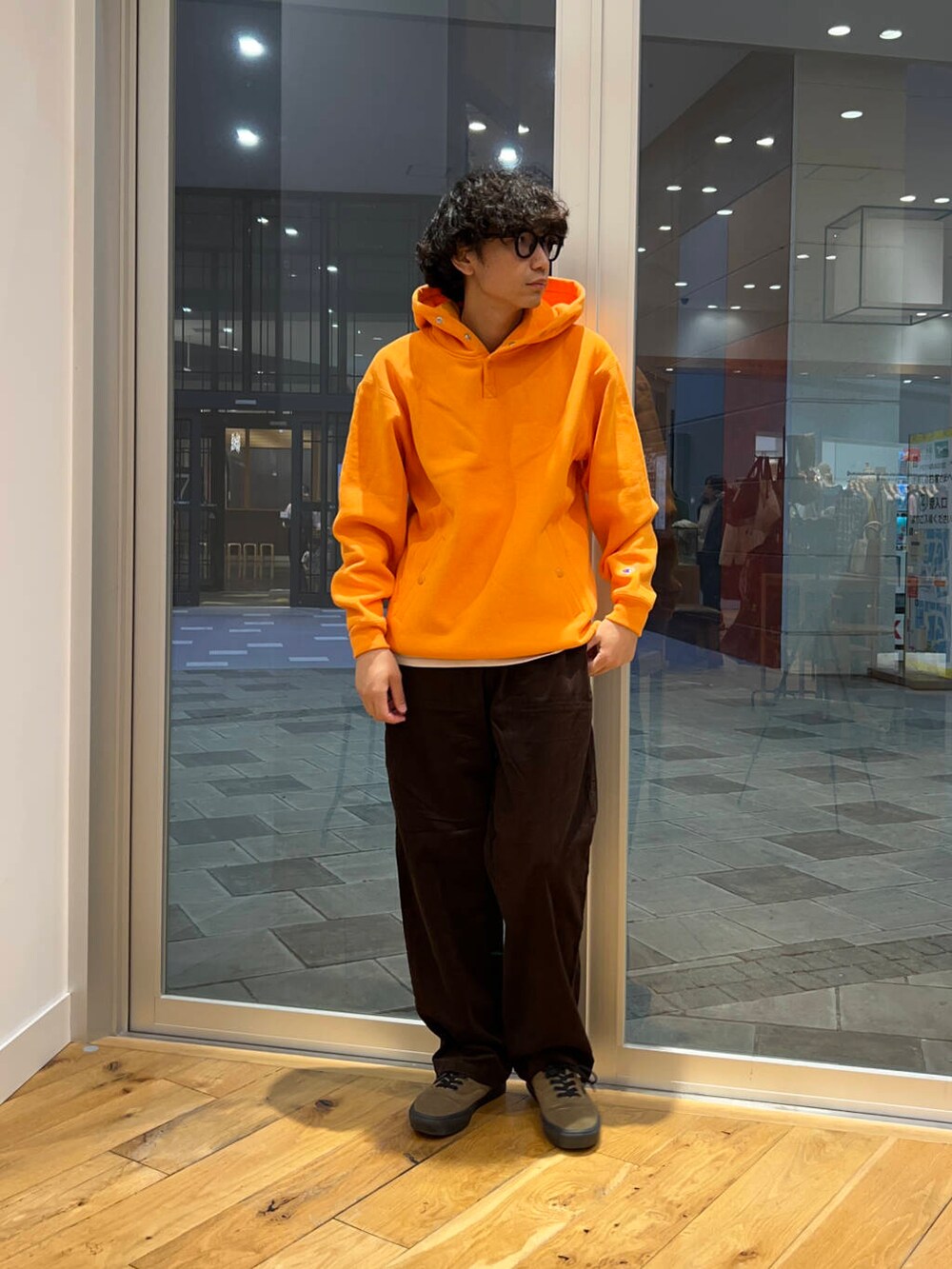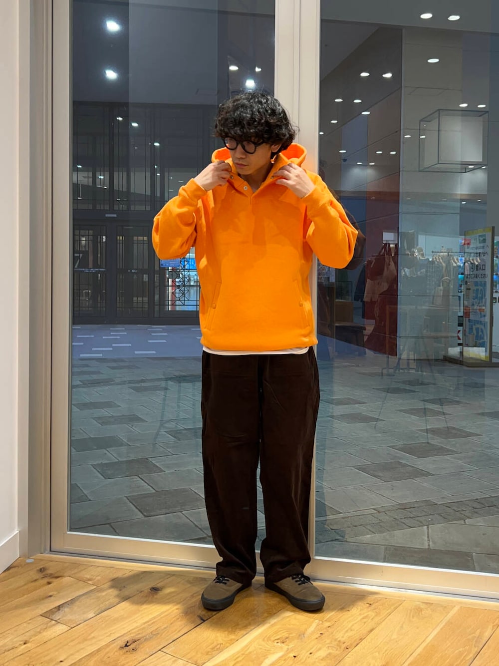 秋らしくボトムスも茶系で。