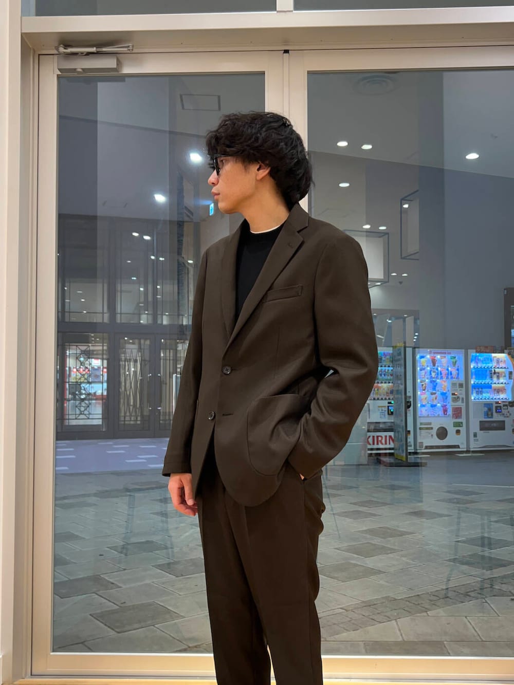 セットアップをカジュアルにニット合わせ