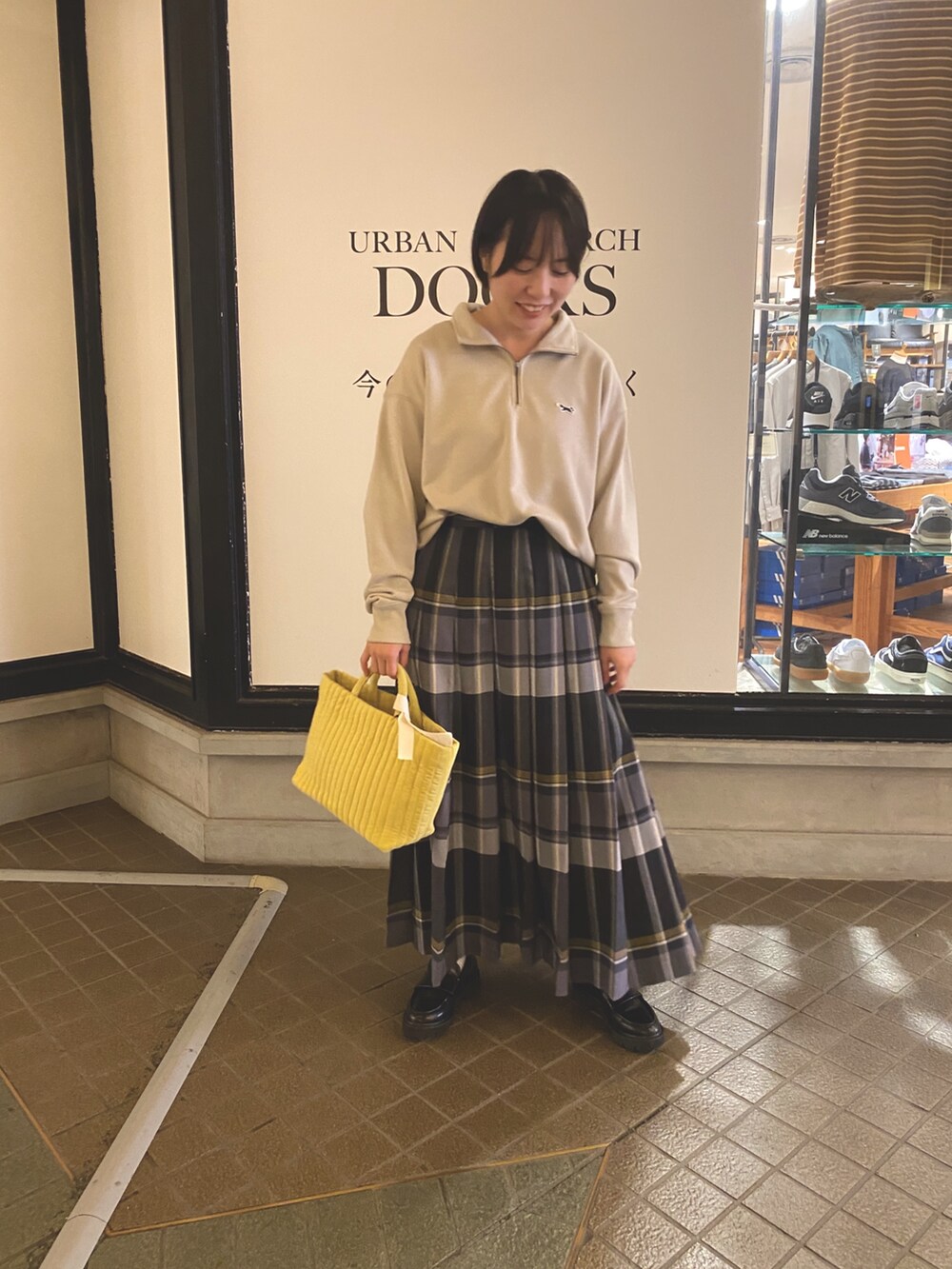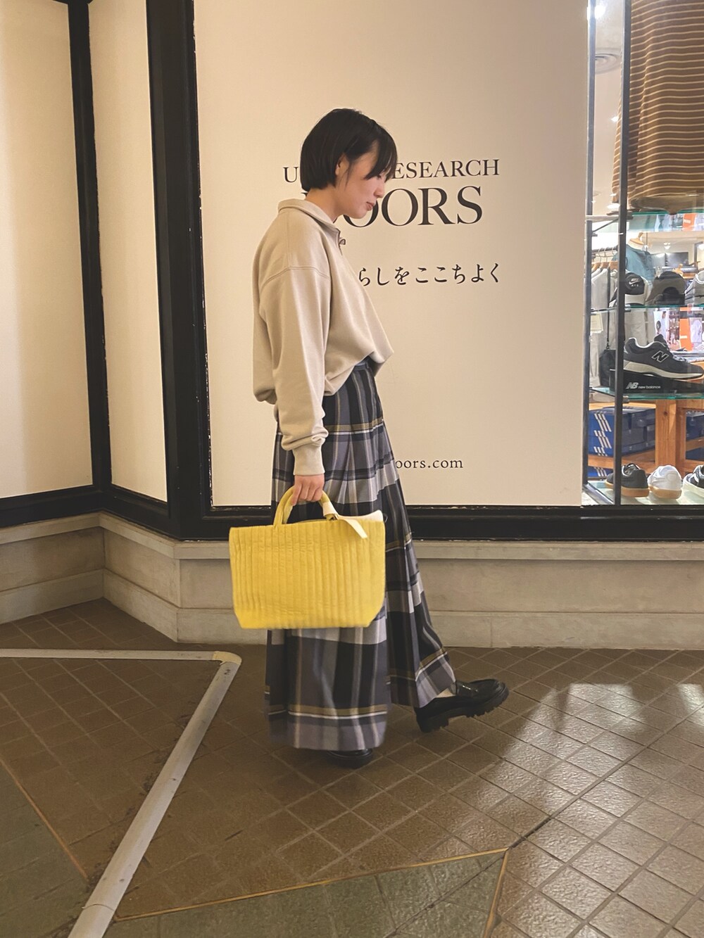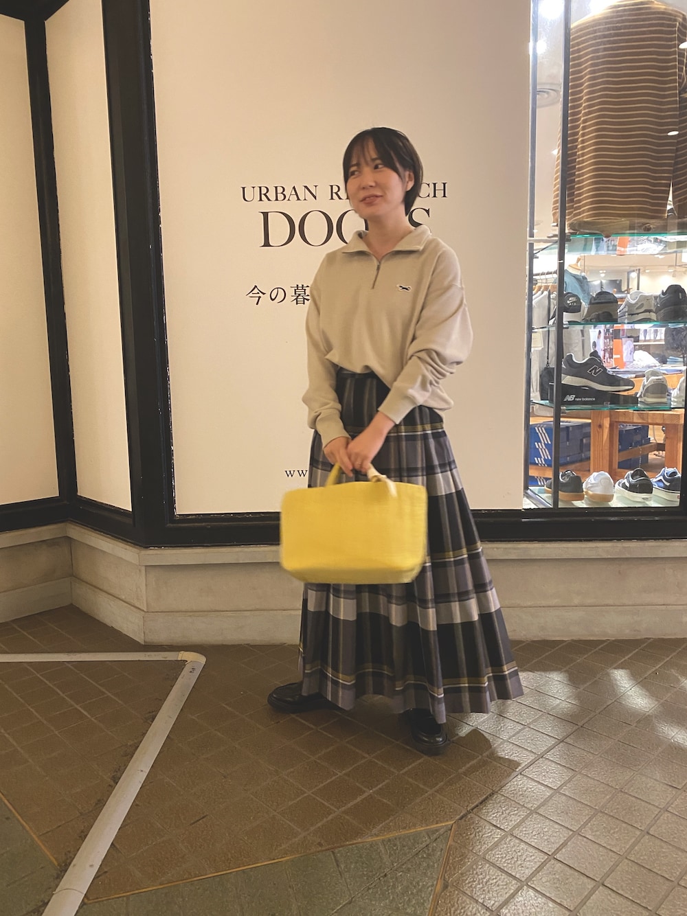 スカートの黄色ラインに合わせたトートバッグを選びました。