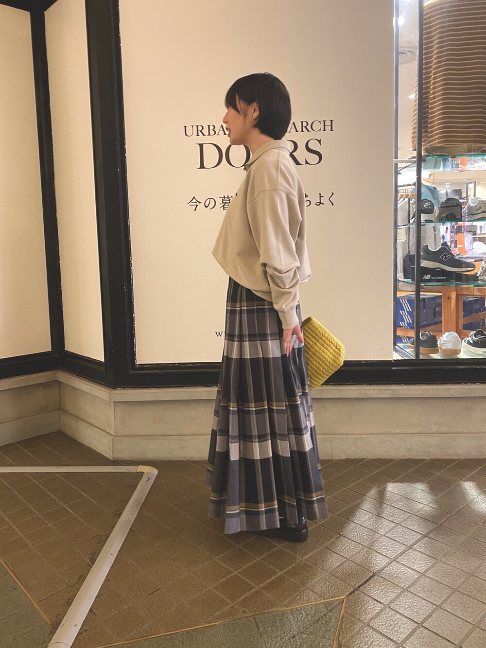 秋冬らしいチェックプリーツスカートはサイドにボタンが付いていて、インスタイルがおすすめです。