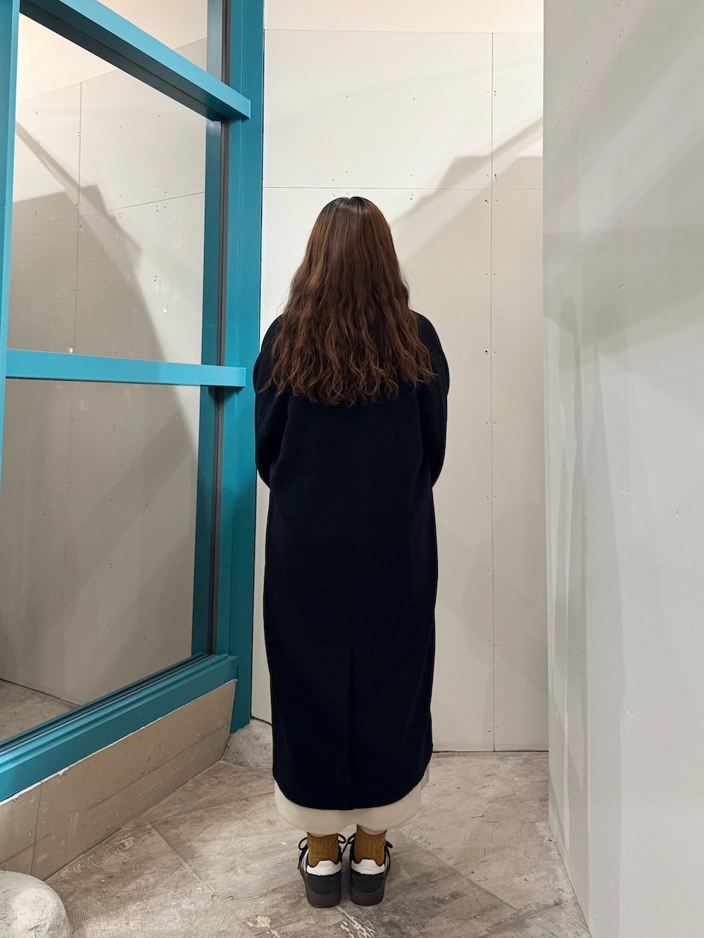 ロングコートは、着丈が長めで軽く少し丸みがあるシルエットが可愛いです〜