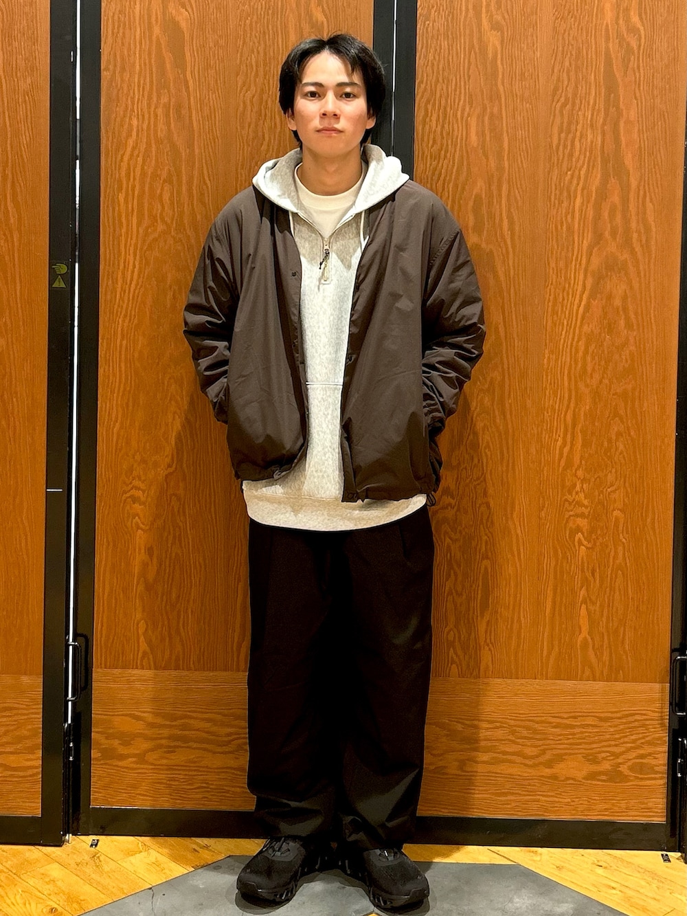 アウター身幅広めなのでスウェットの上に着てもごわつきにくいです
