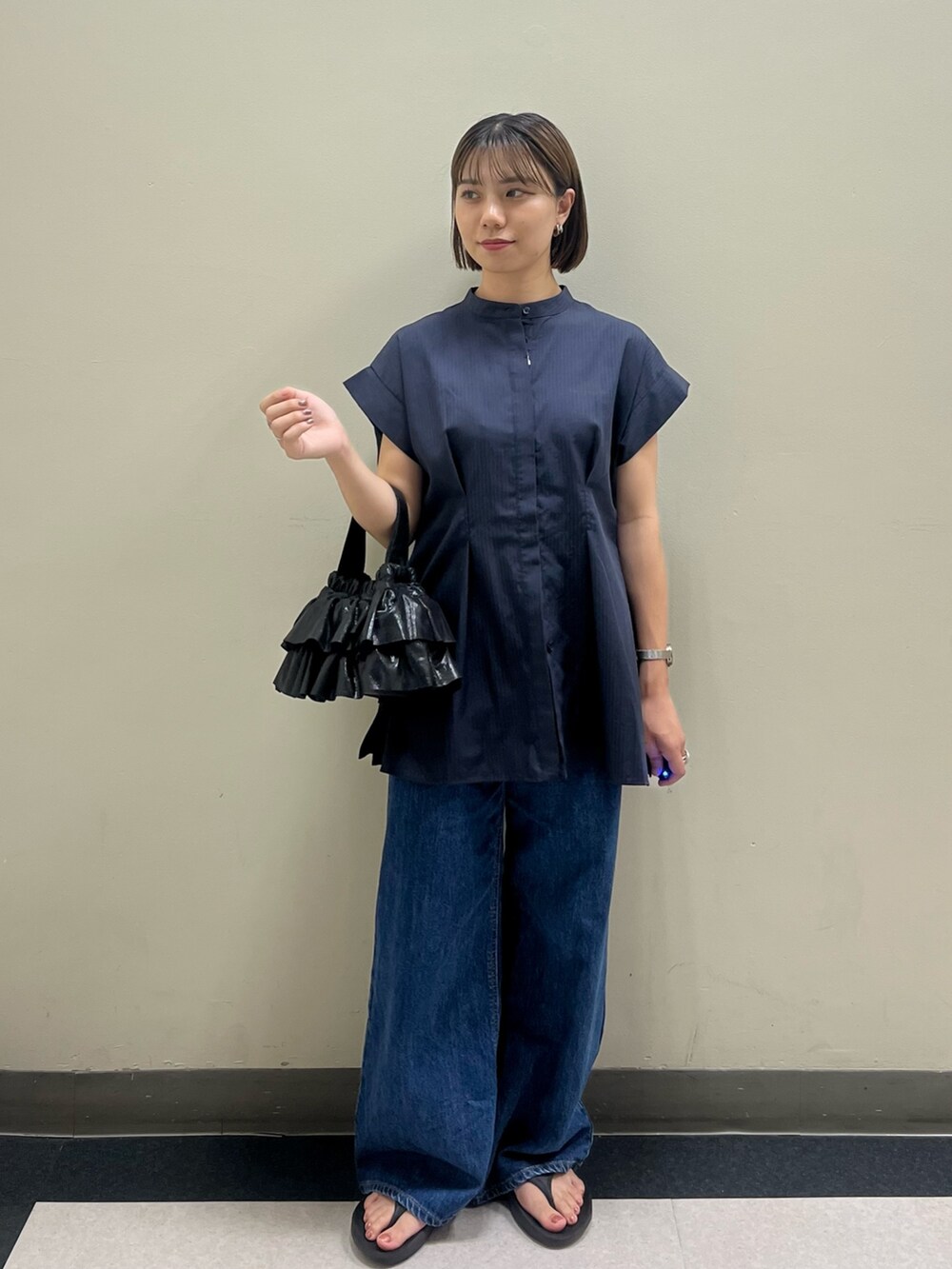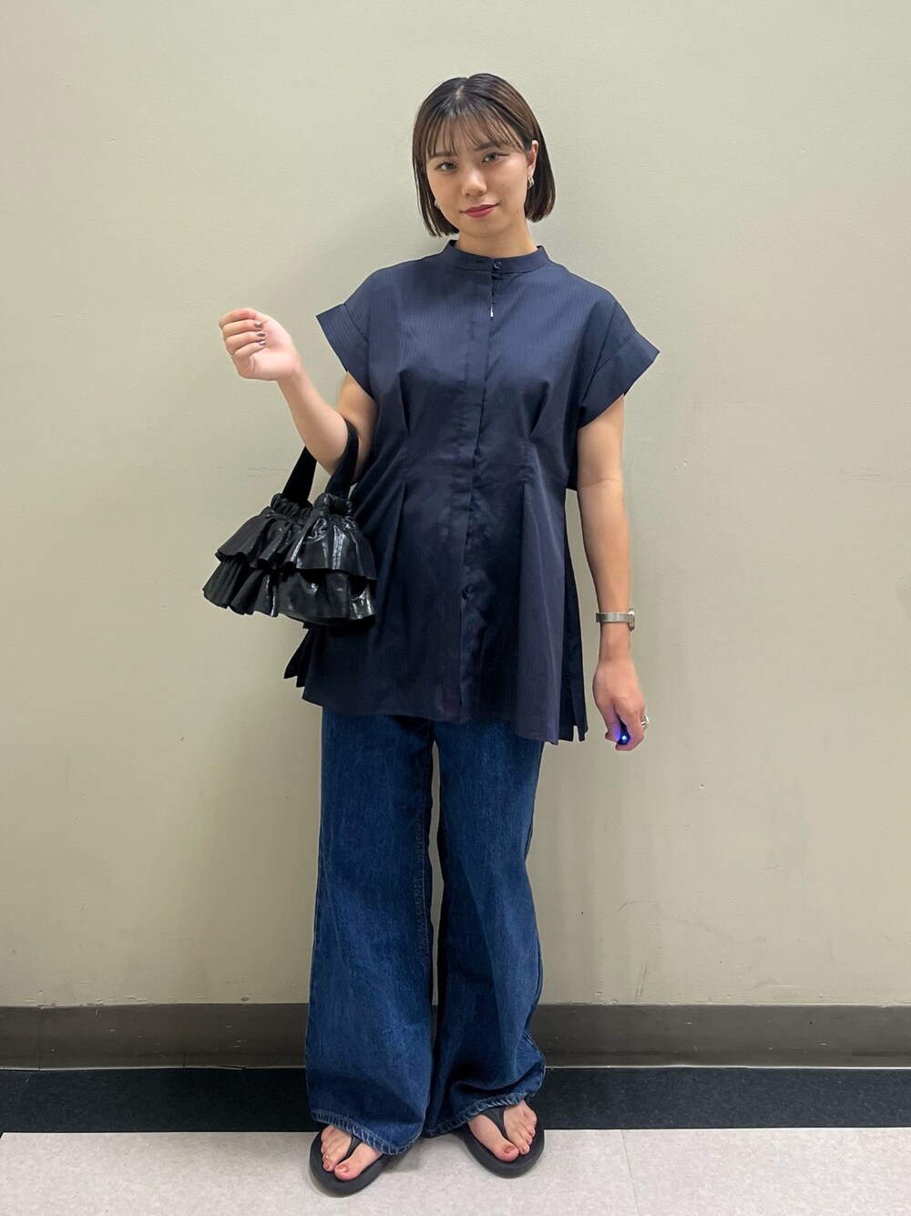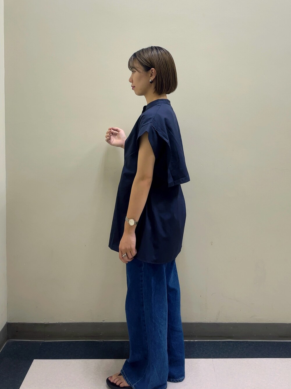 丈が長めなので腰回りもカバーできて、ストライプのラインが細見え効果を出してくれます!