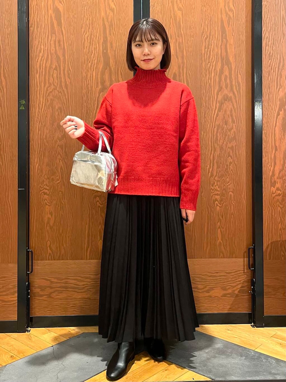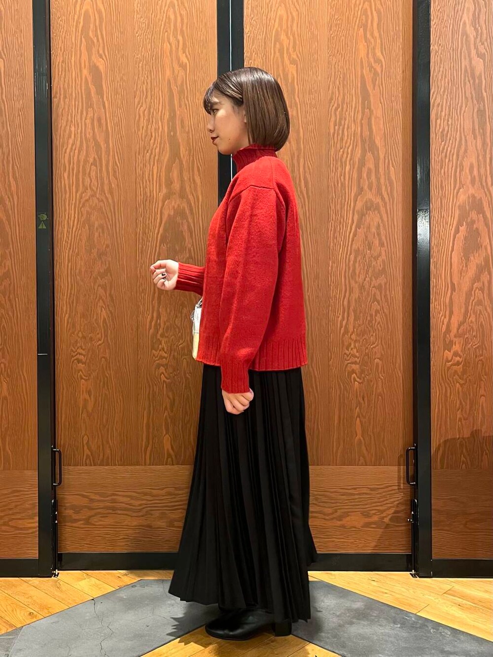 タートルネックニット、色味が映えるので他のアイテムはあえてシンプルにしました!