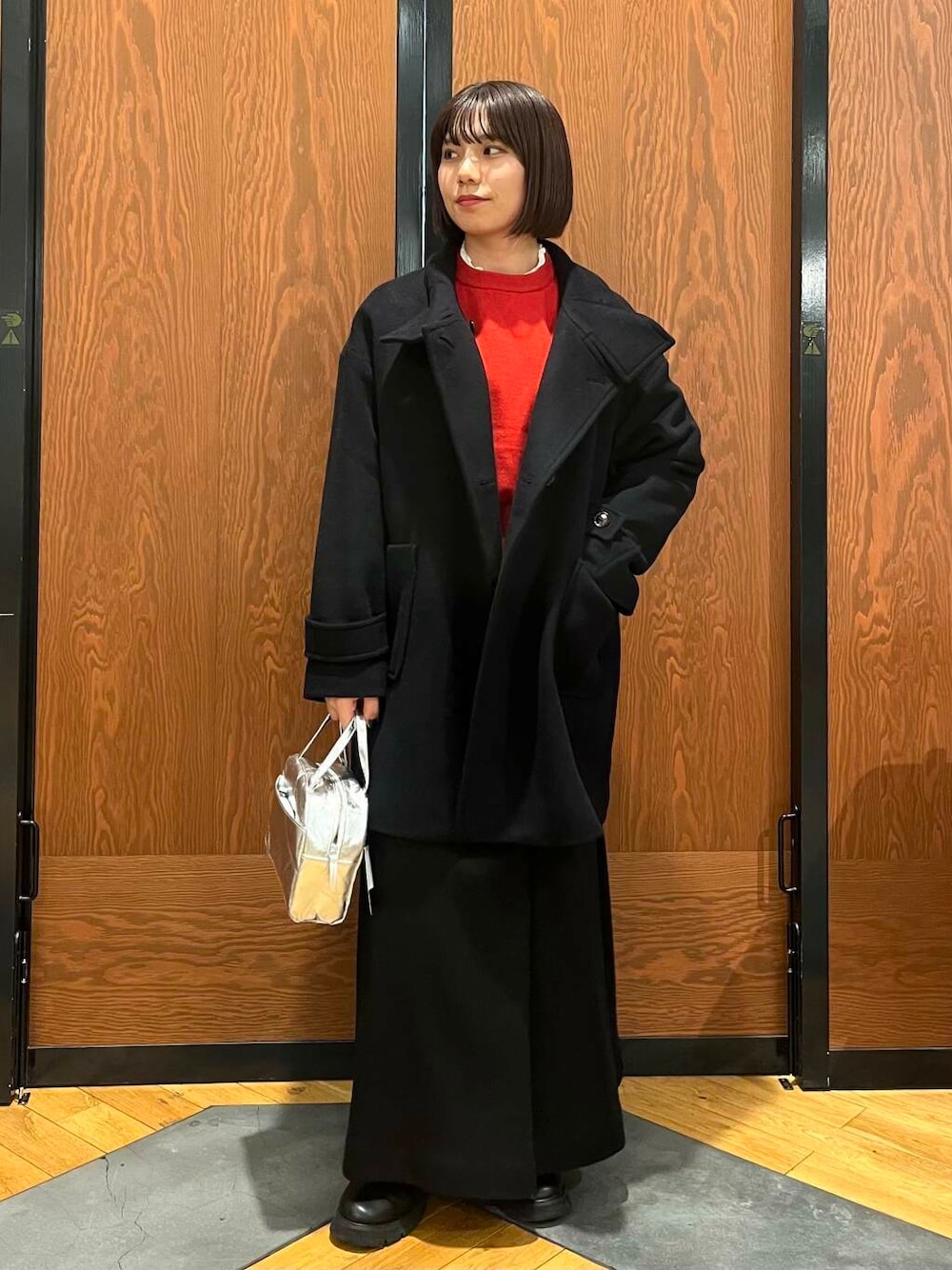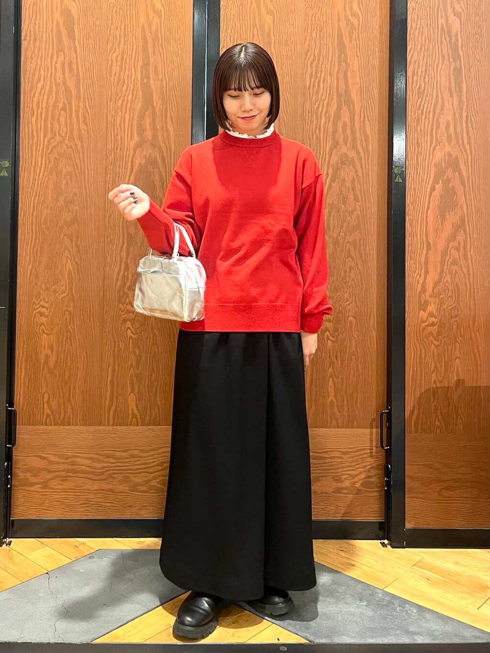 クリスマスが近いので、赤ニットを使ったコーデにしました🧶