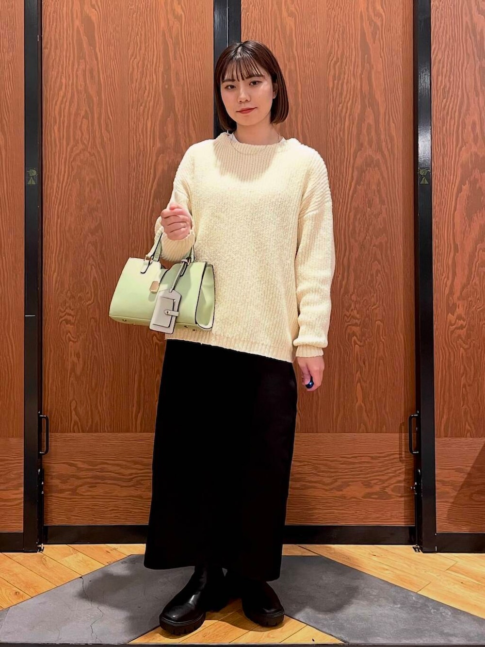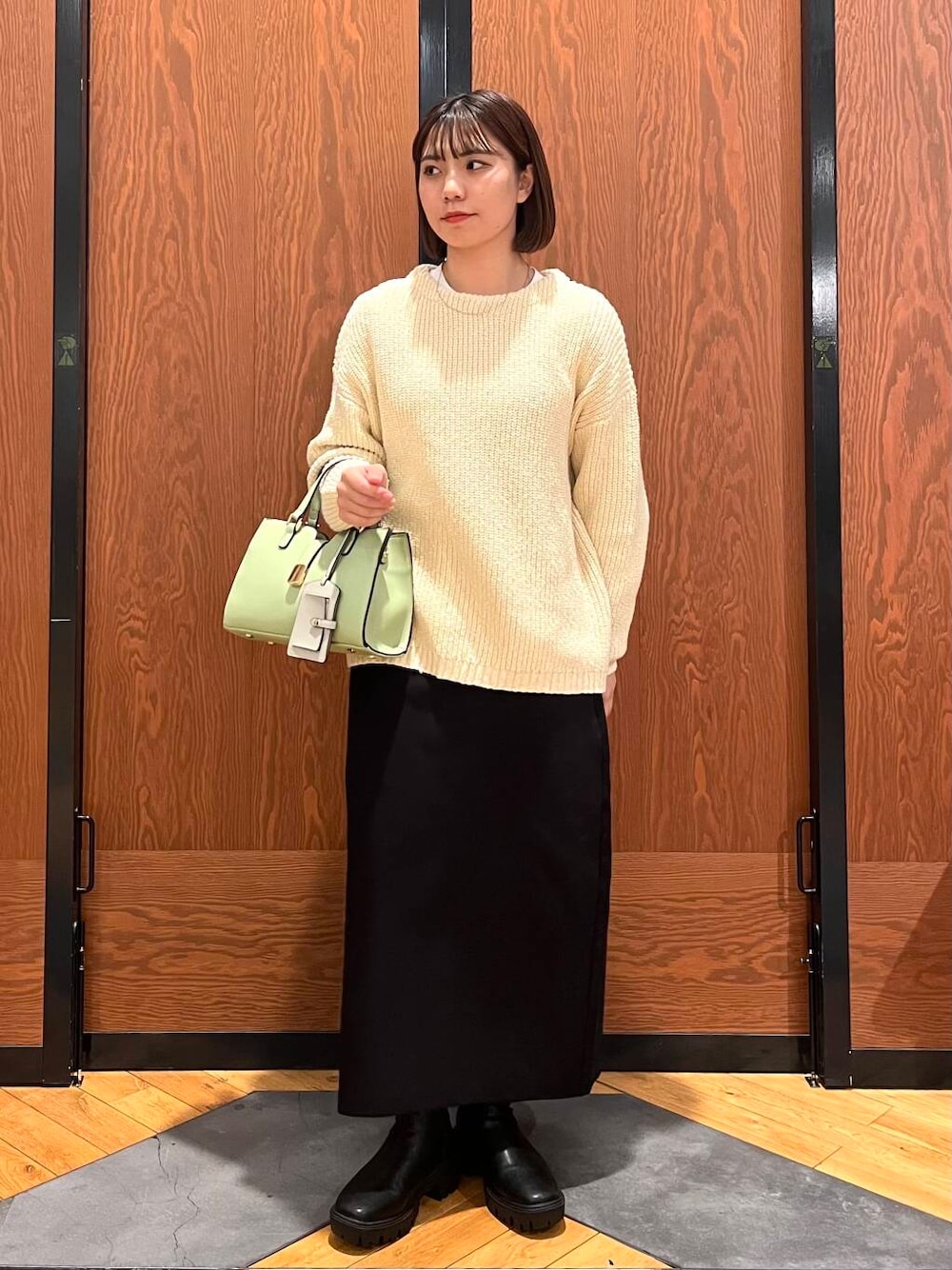 カジュアルなニットにきれいめなアイテムを合わせたキレイめカジュアルなスタイリングです!