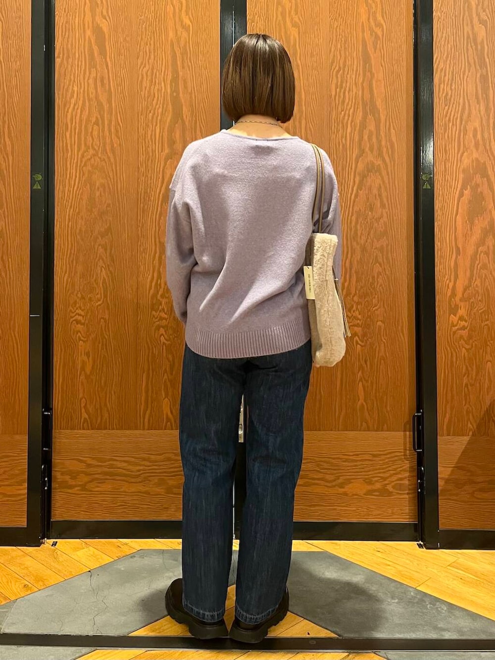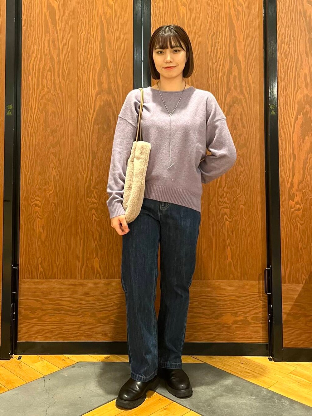 デニムはスッキリしたシルエットのワイドパンツです!広がりすぎないので、ダボつかずに穿けます!