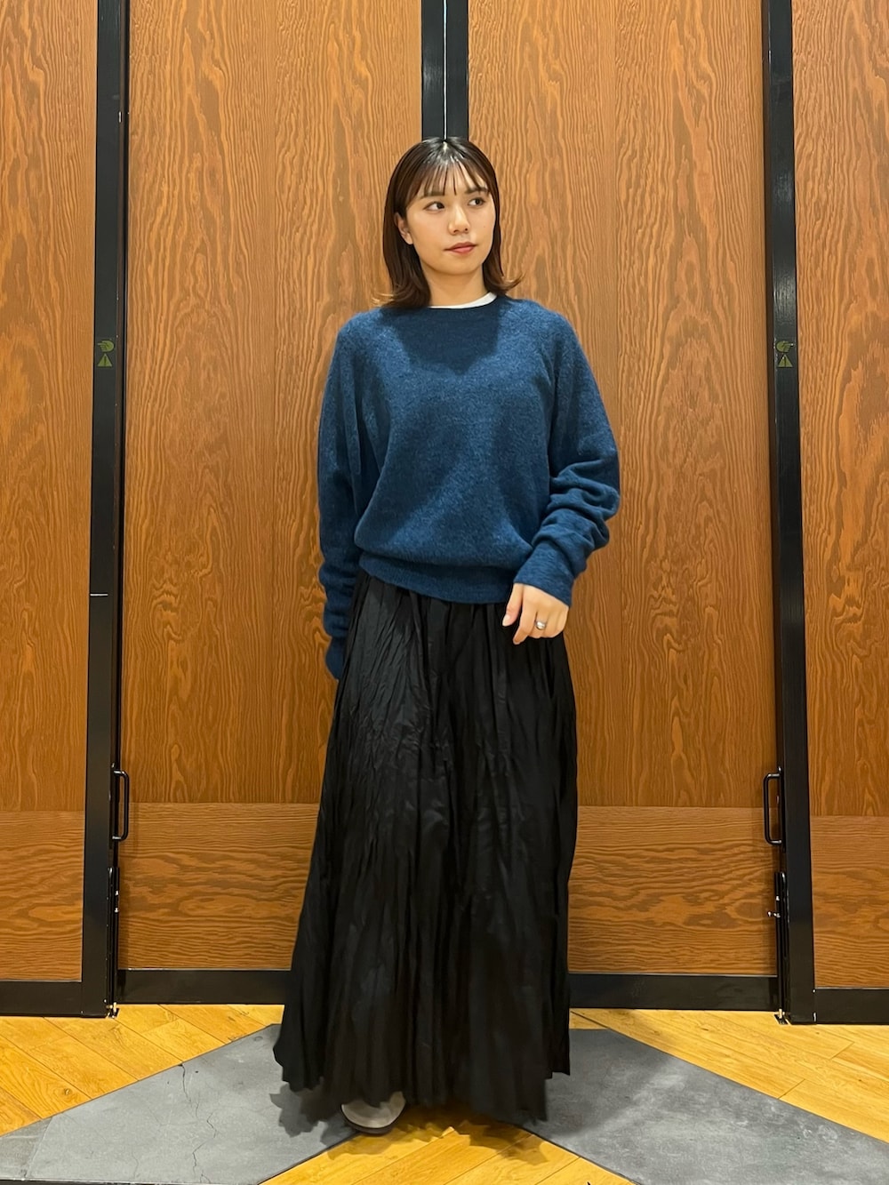 ニットのカラーが映えるので他のアイテムはシンプルにしました!