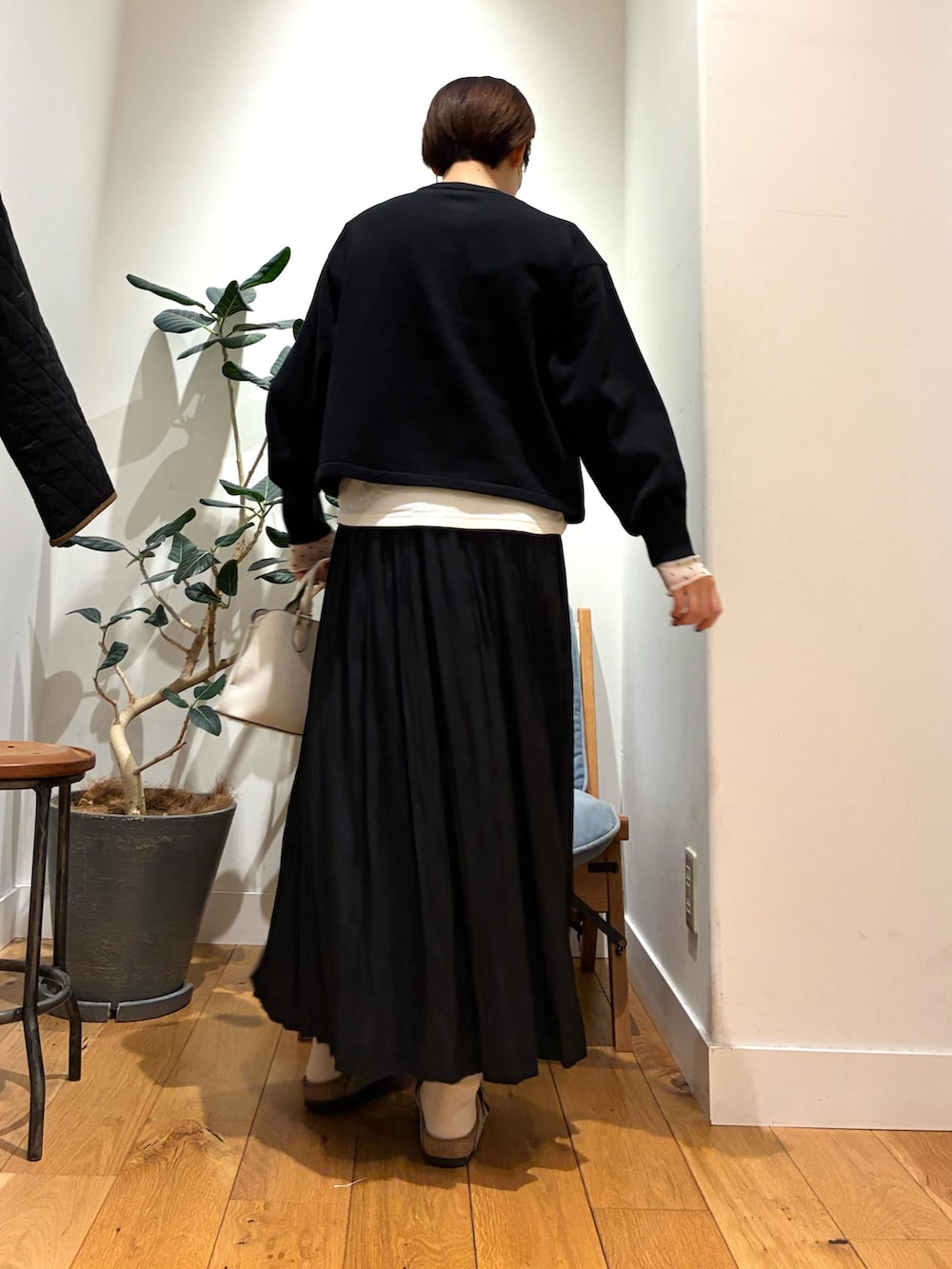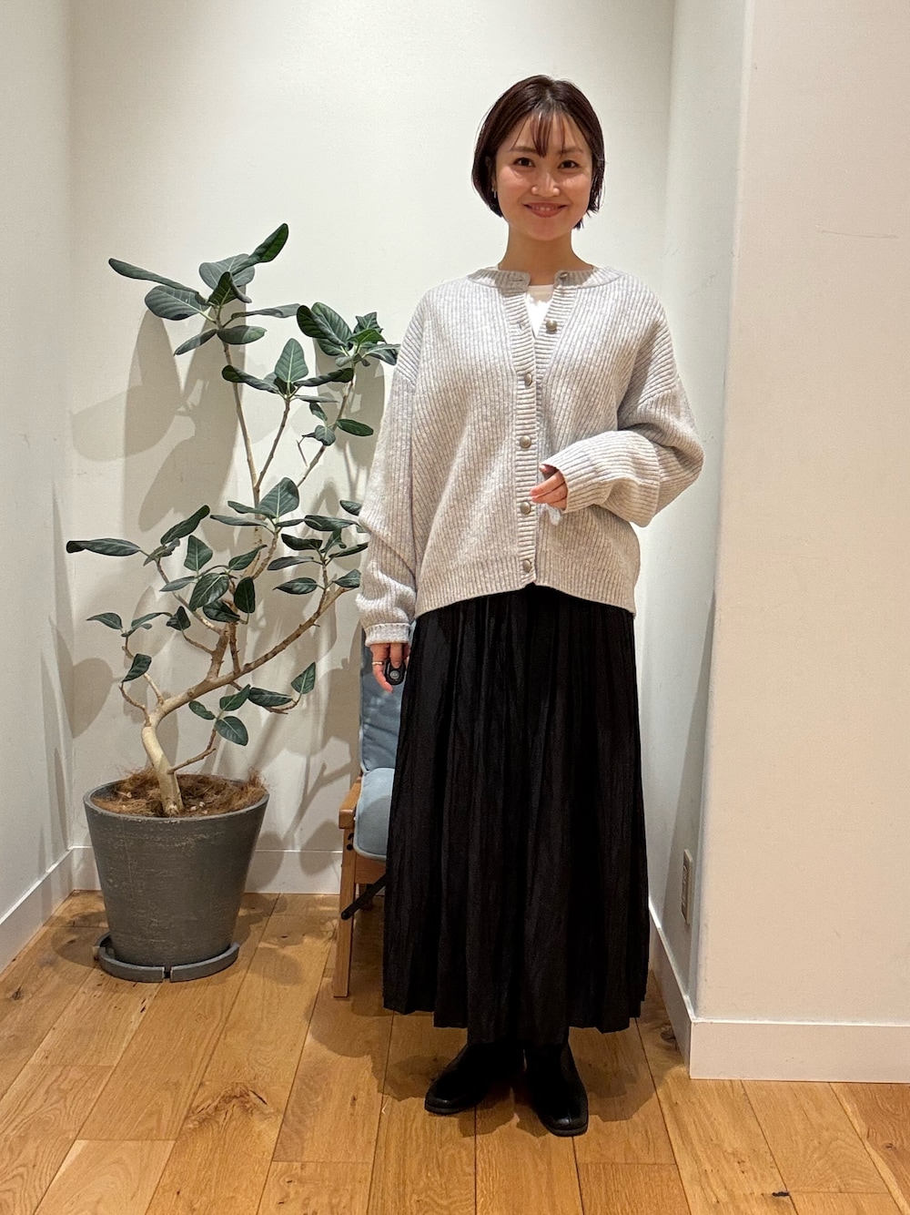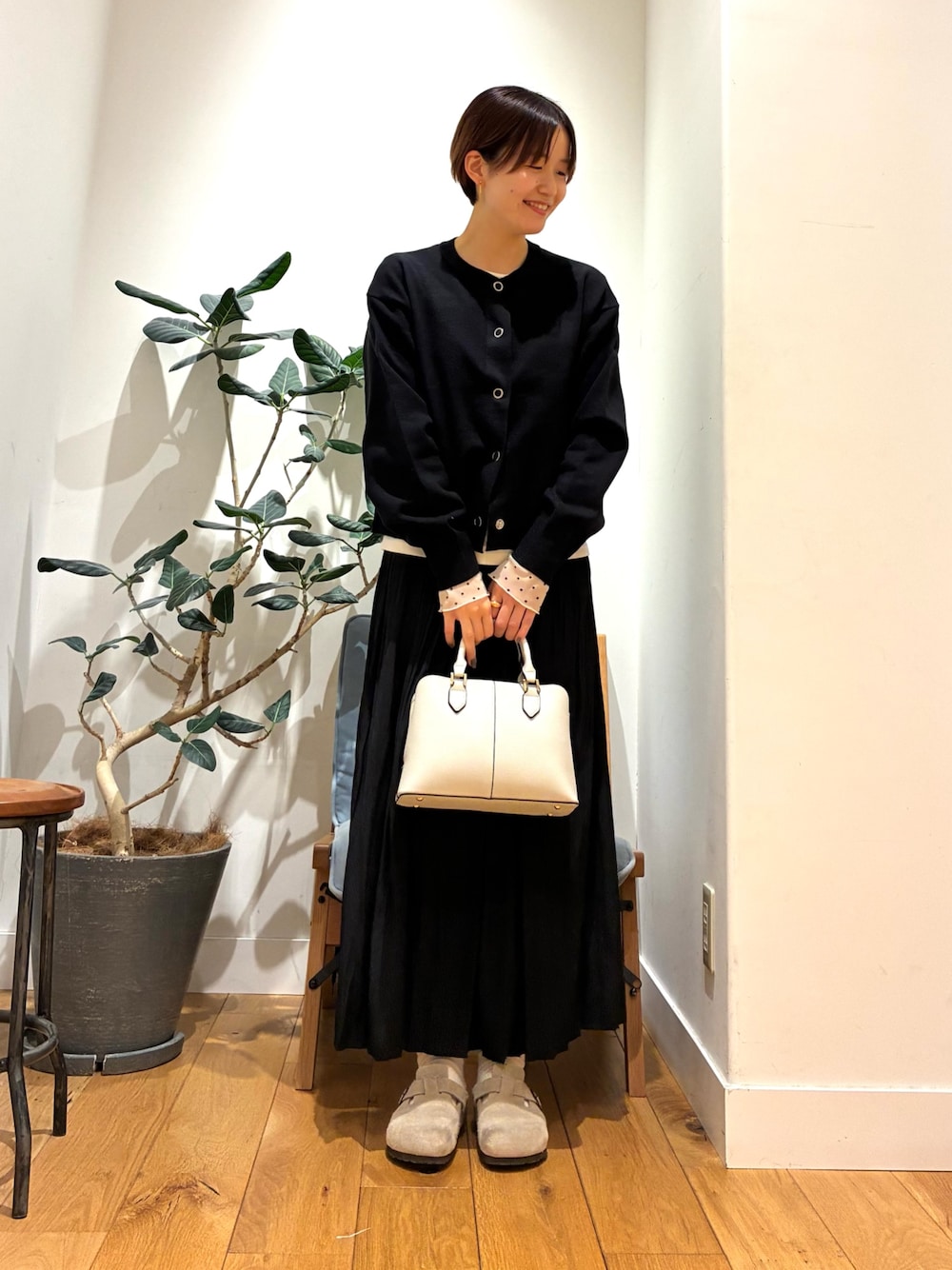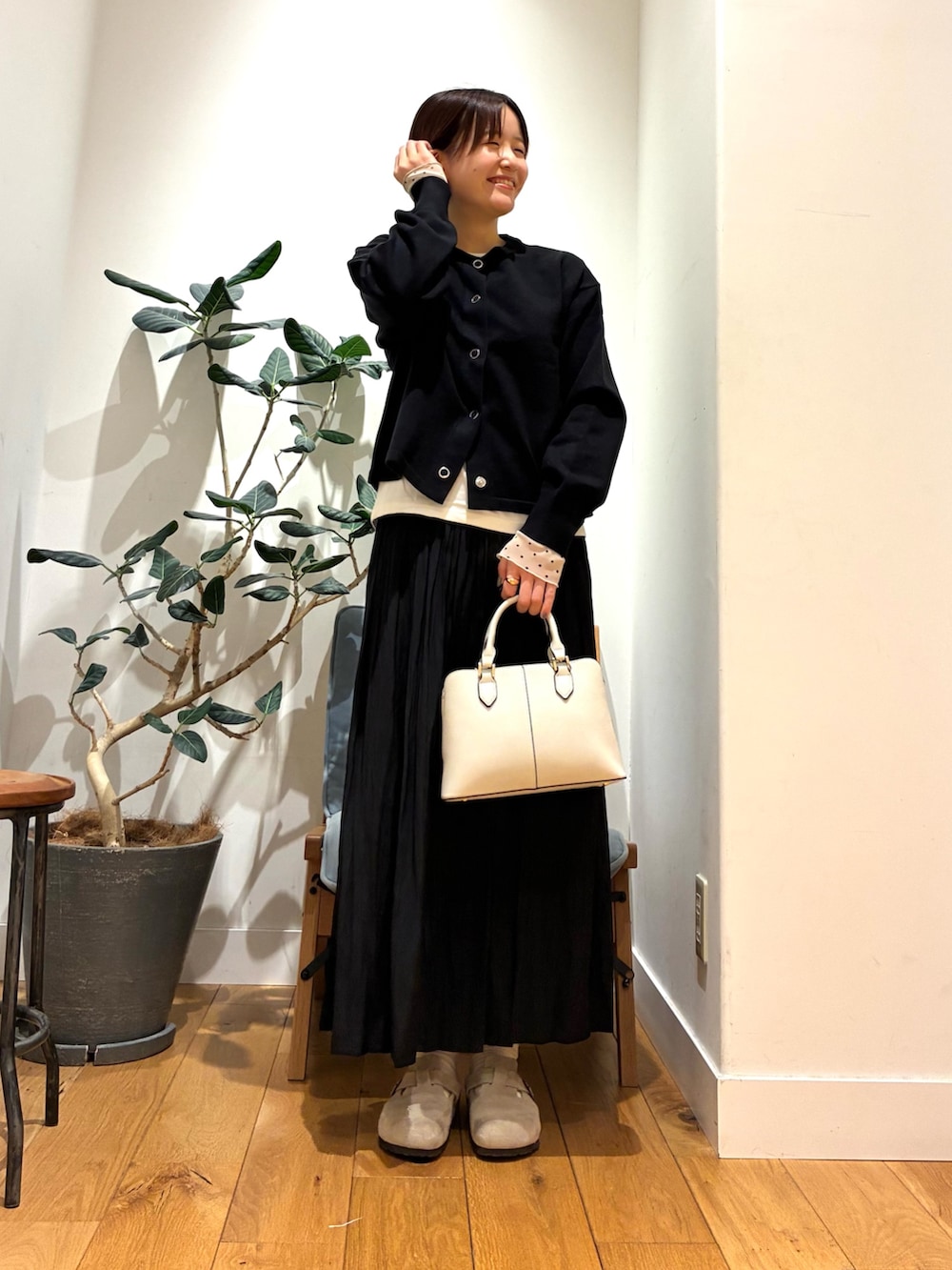 シンプルブラックですが、ボタンの感じと、丈感、大人かわいいですね!!