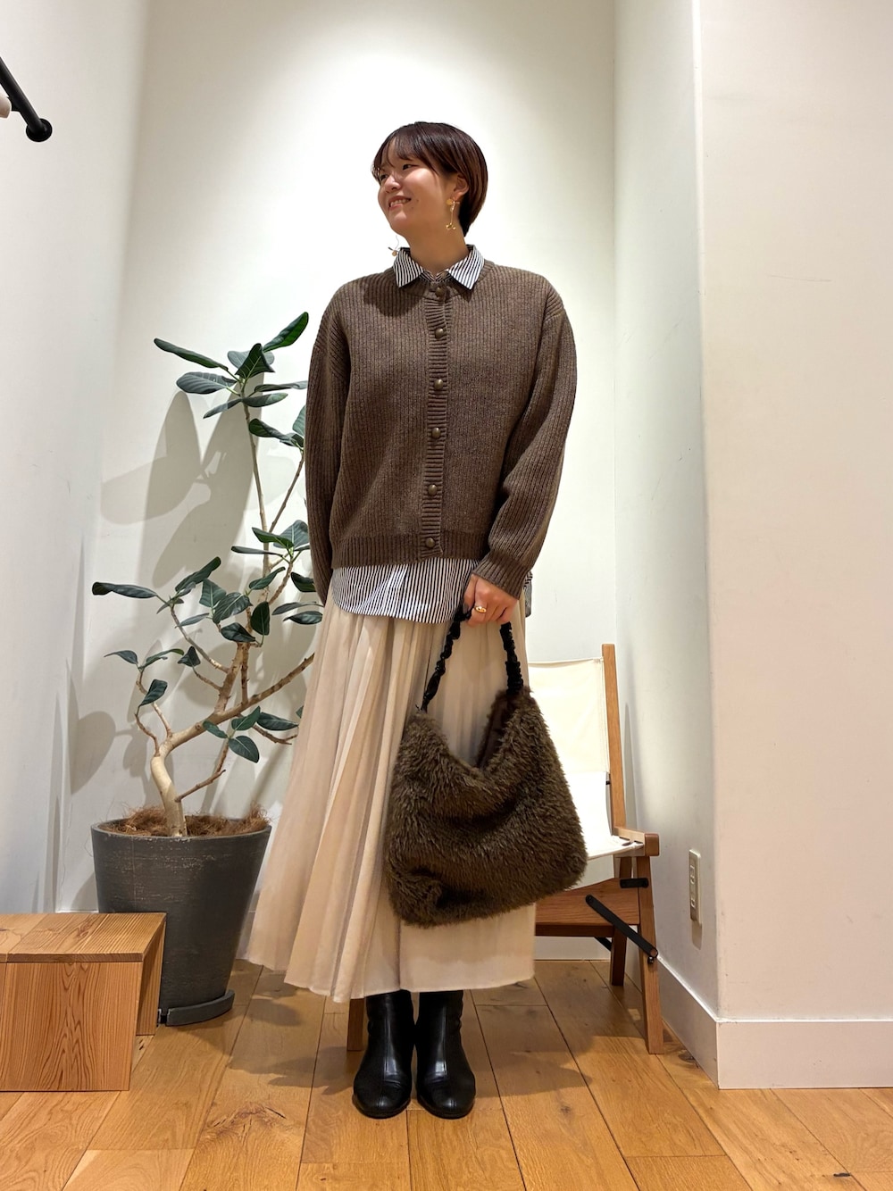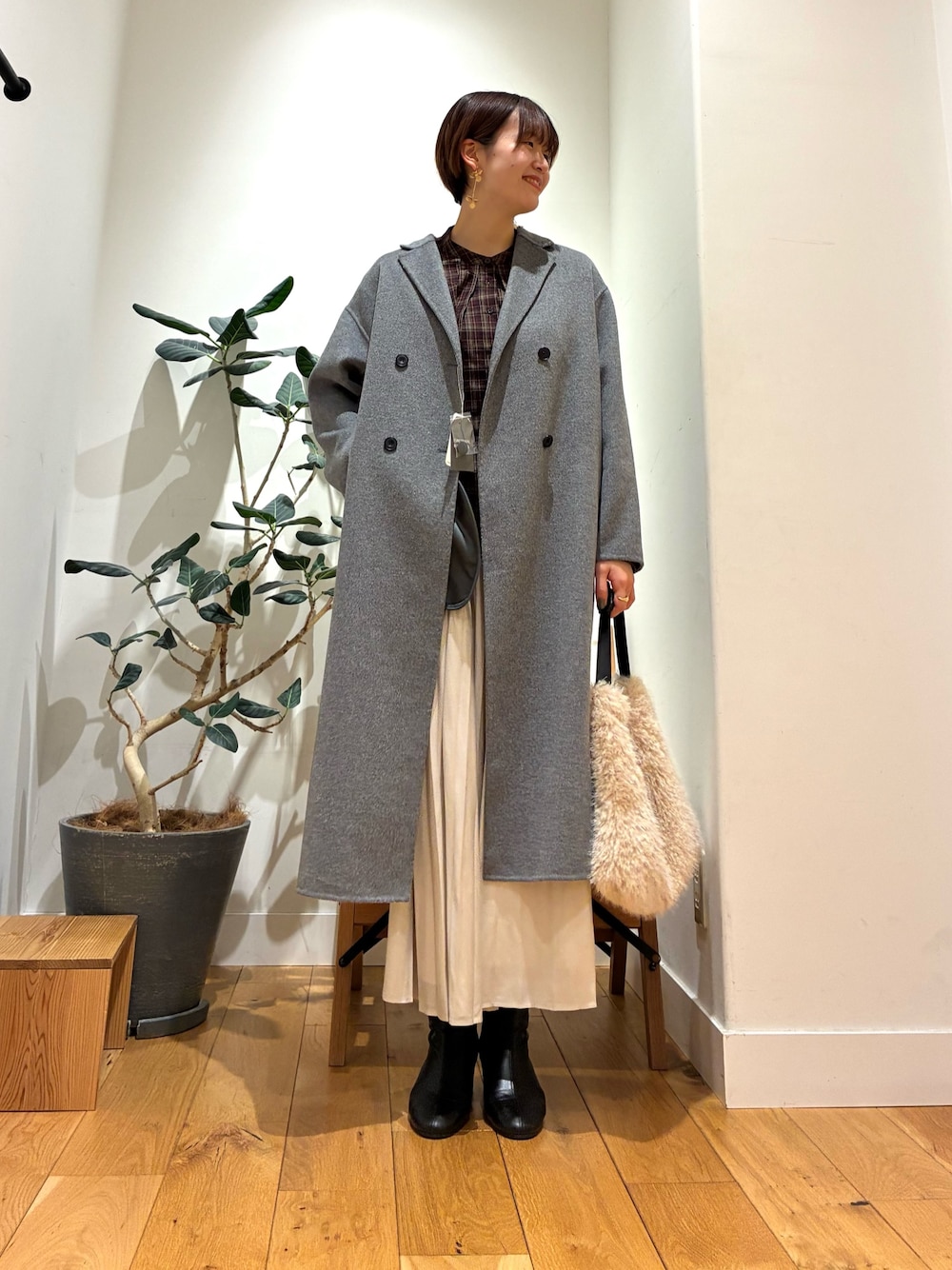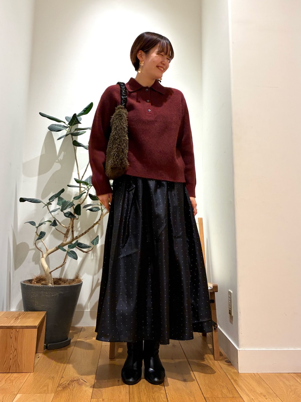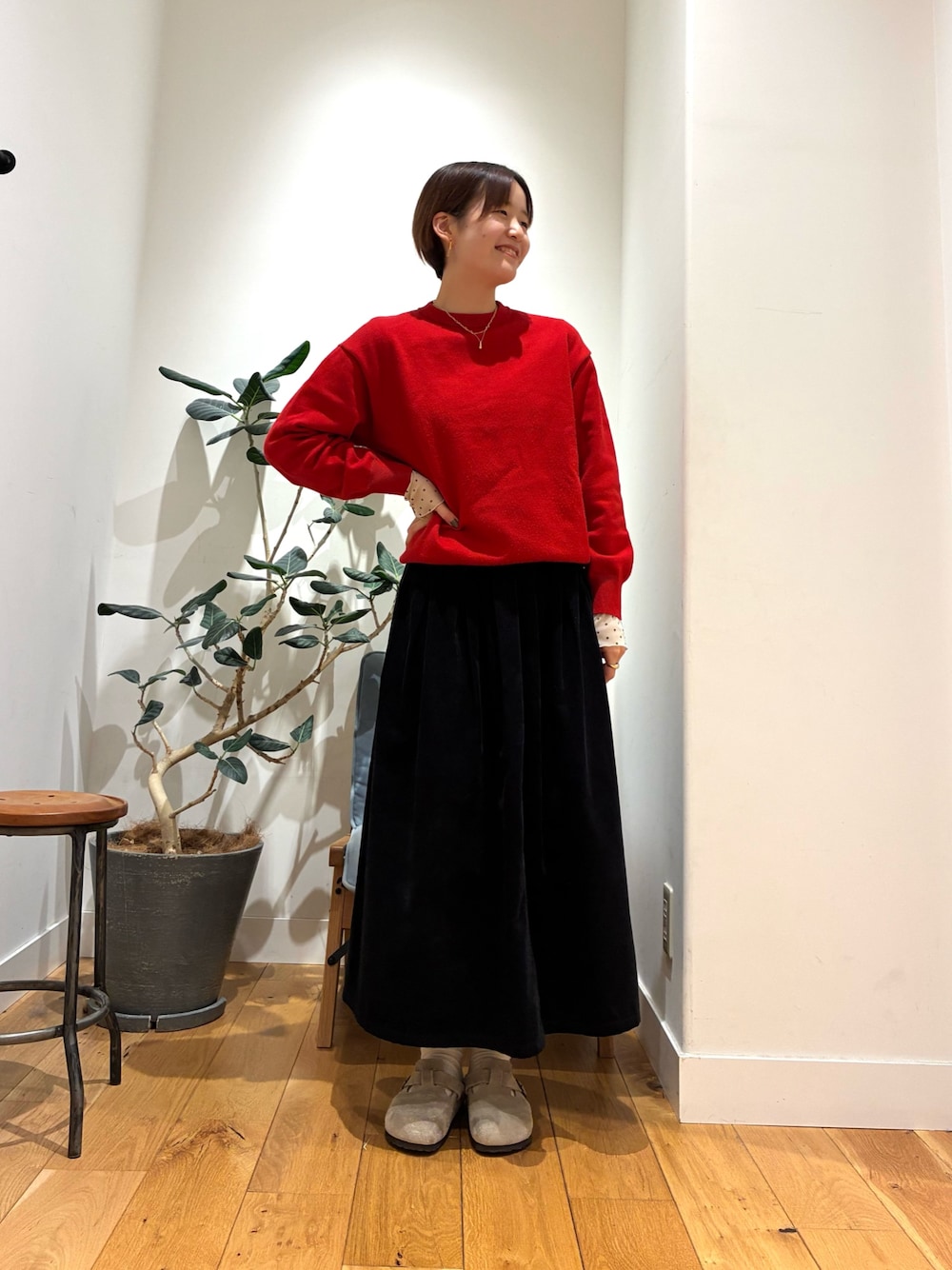 シンプルブラックですが、ボタンの感じと、丈感、大人かわいいですね!!