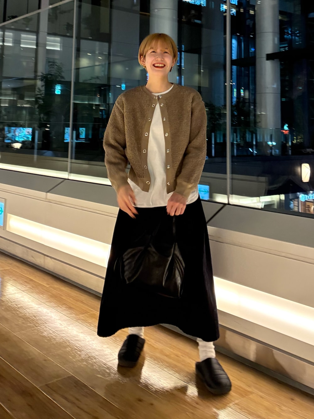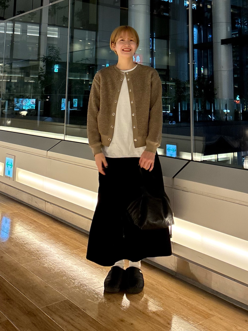 ブラックのコーデュロイスカートだと秋感が出ますね〜