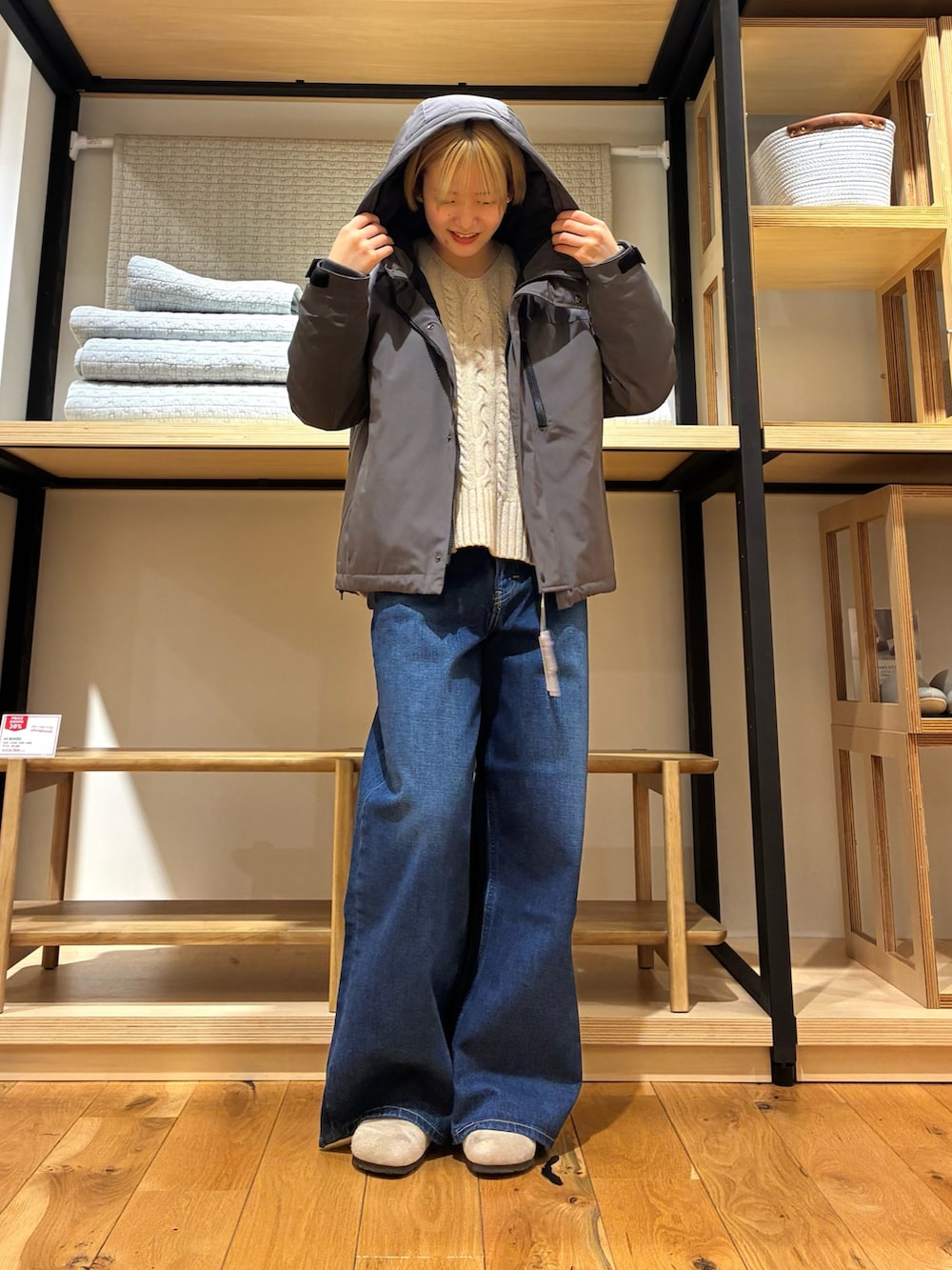 サニーレーベルのダウンは、窮屈感がなく、ゆったりしていて、暖かくて、着ているチャコールのカラーは、合わせやすいカラーですよね!!