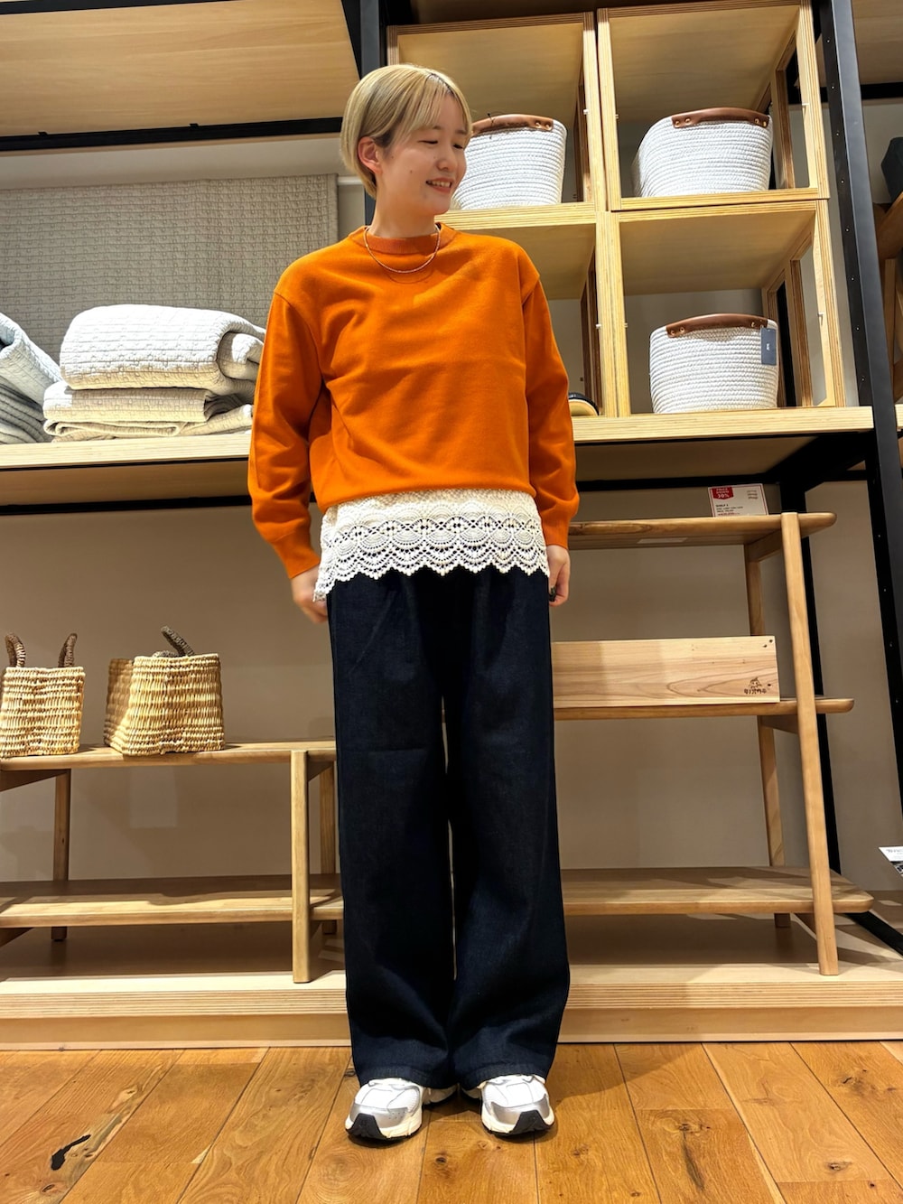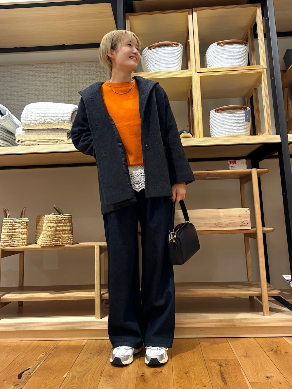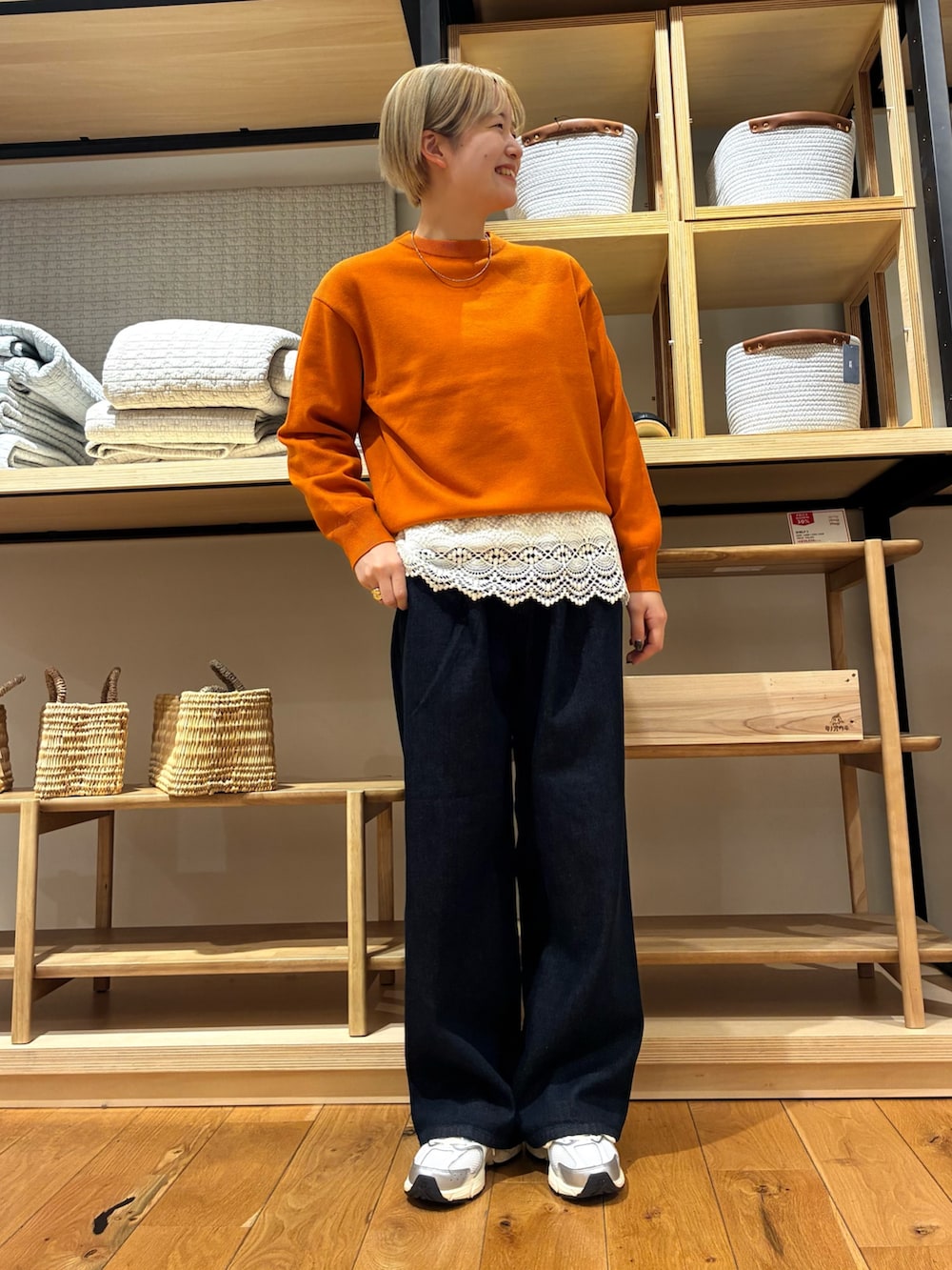 やっぱり200日ニットのオレンジは、コーデが明るくなりますね!!洗えるニットなんておすすめすぎます👽