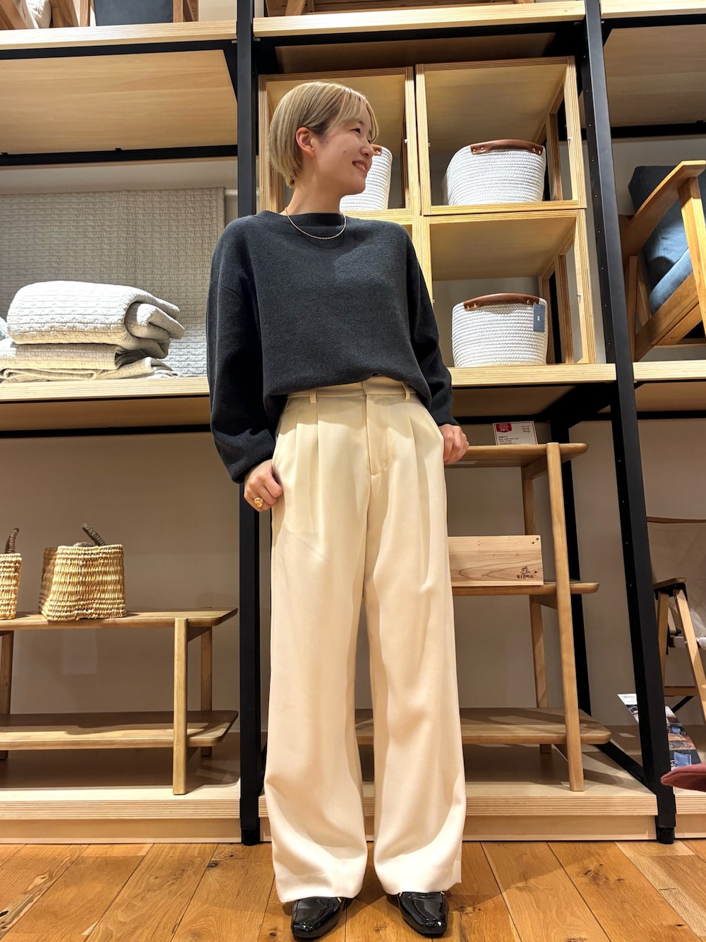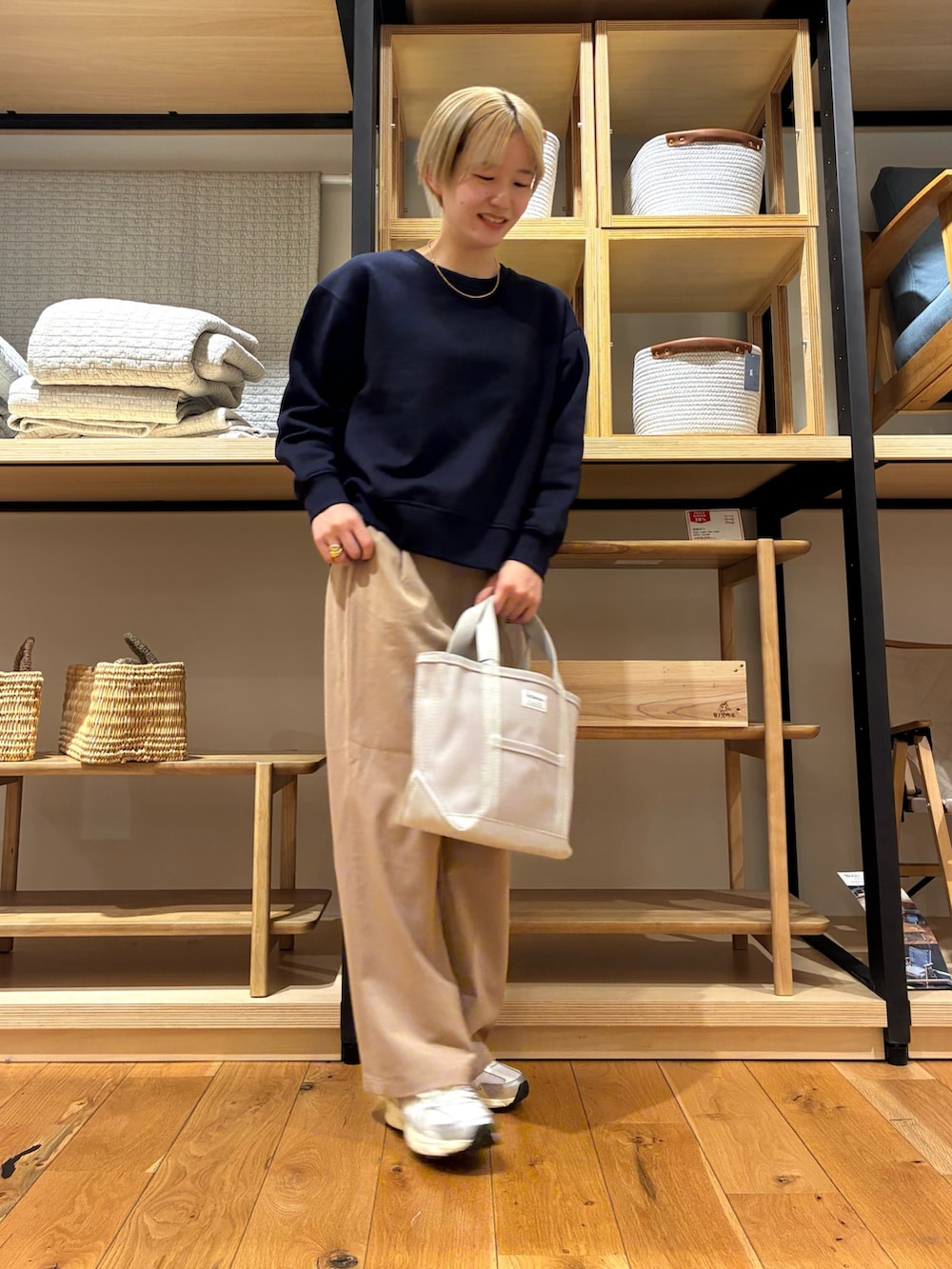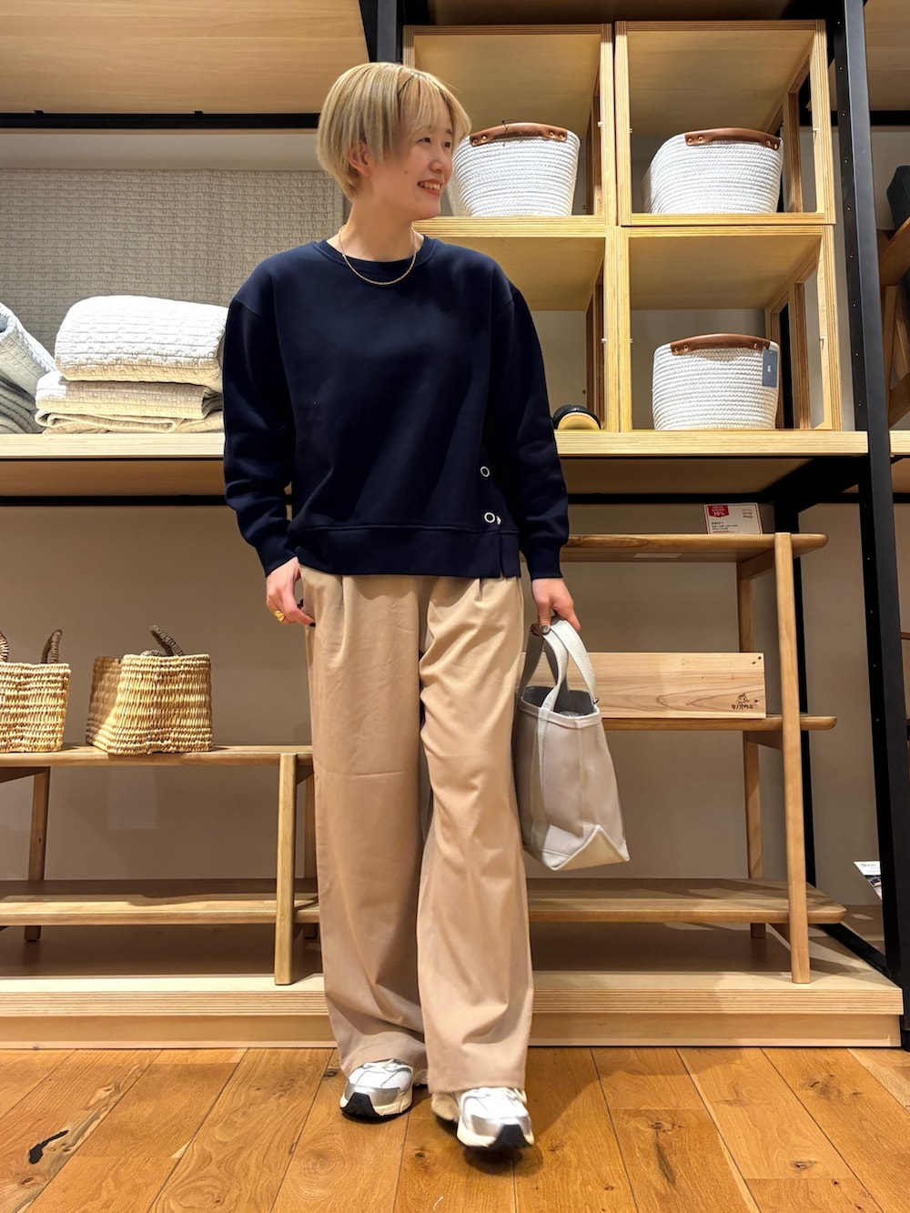 ネイビースウェットは、サイドにボタンがあり、オシャレですよね!!