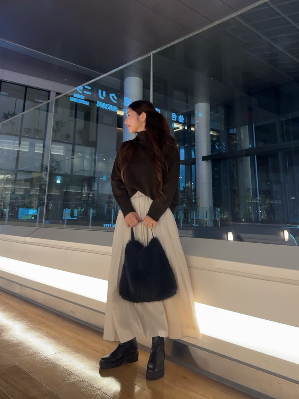 URのアウターはとにかく暖かい、、のに軽い!!肩が疲れないアウター大事🙆♀️