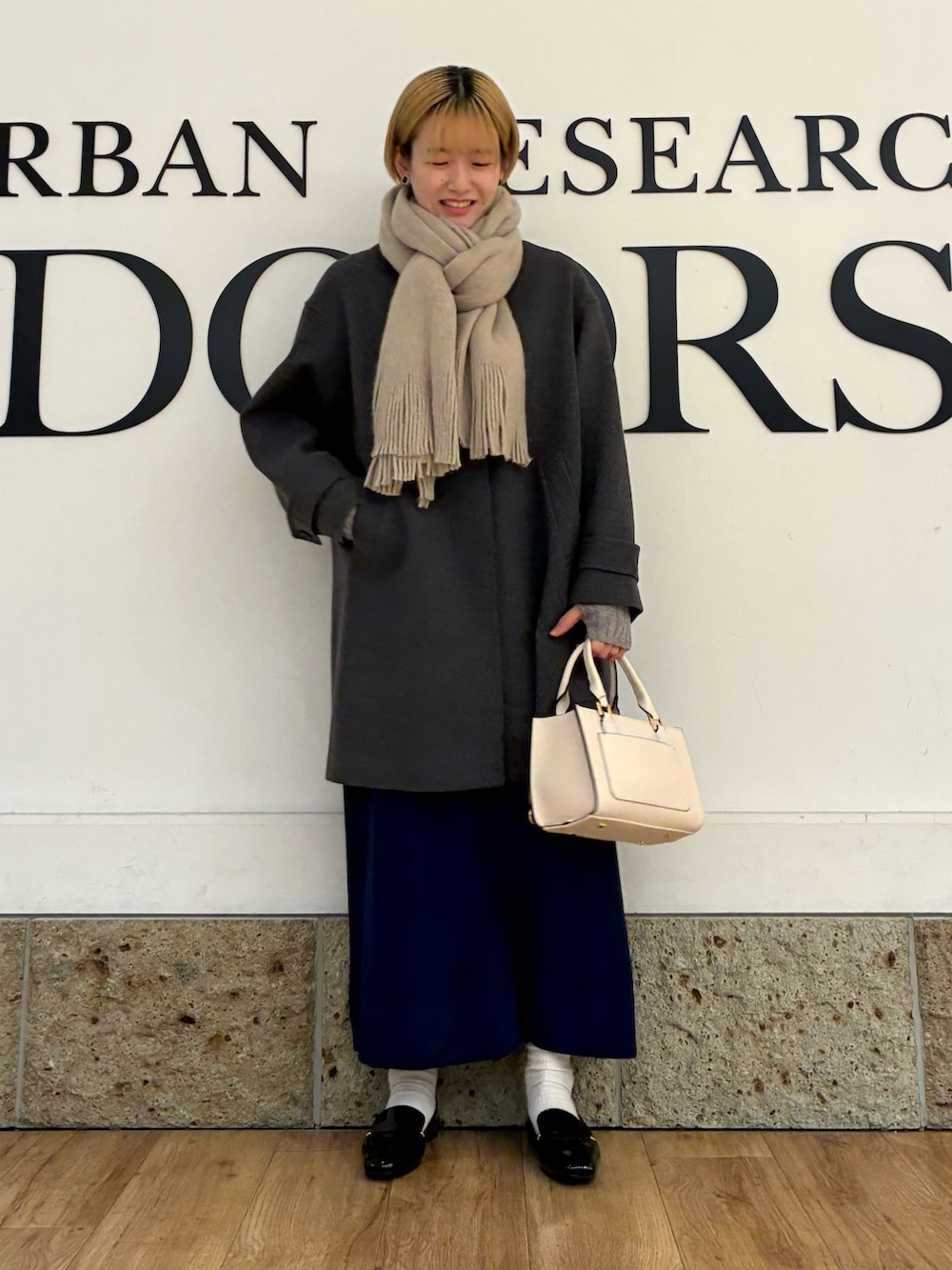 ウールノーカラーコートは、首元がスッキリしていて、大人カジュアルな雰囲気が出ますね〜