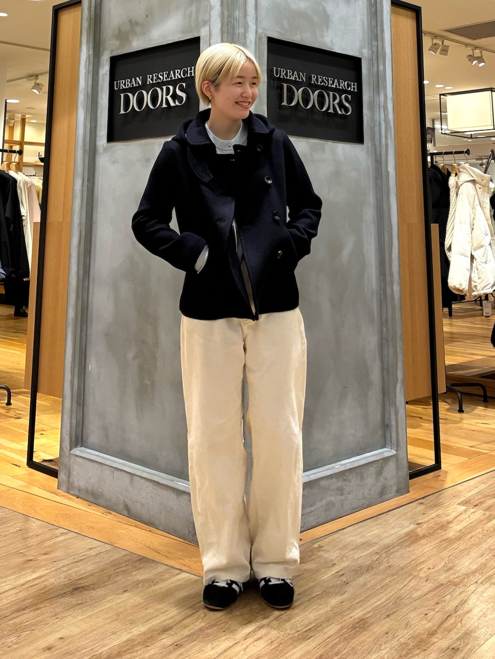 DOORSショールカラー2WAYショートコート- カラー: