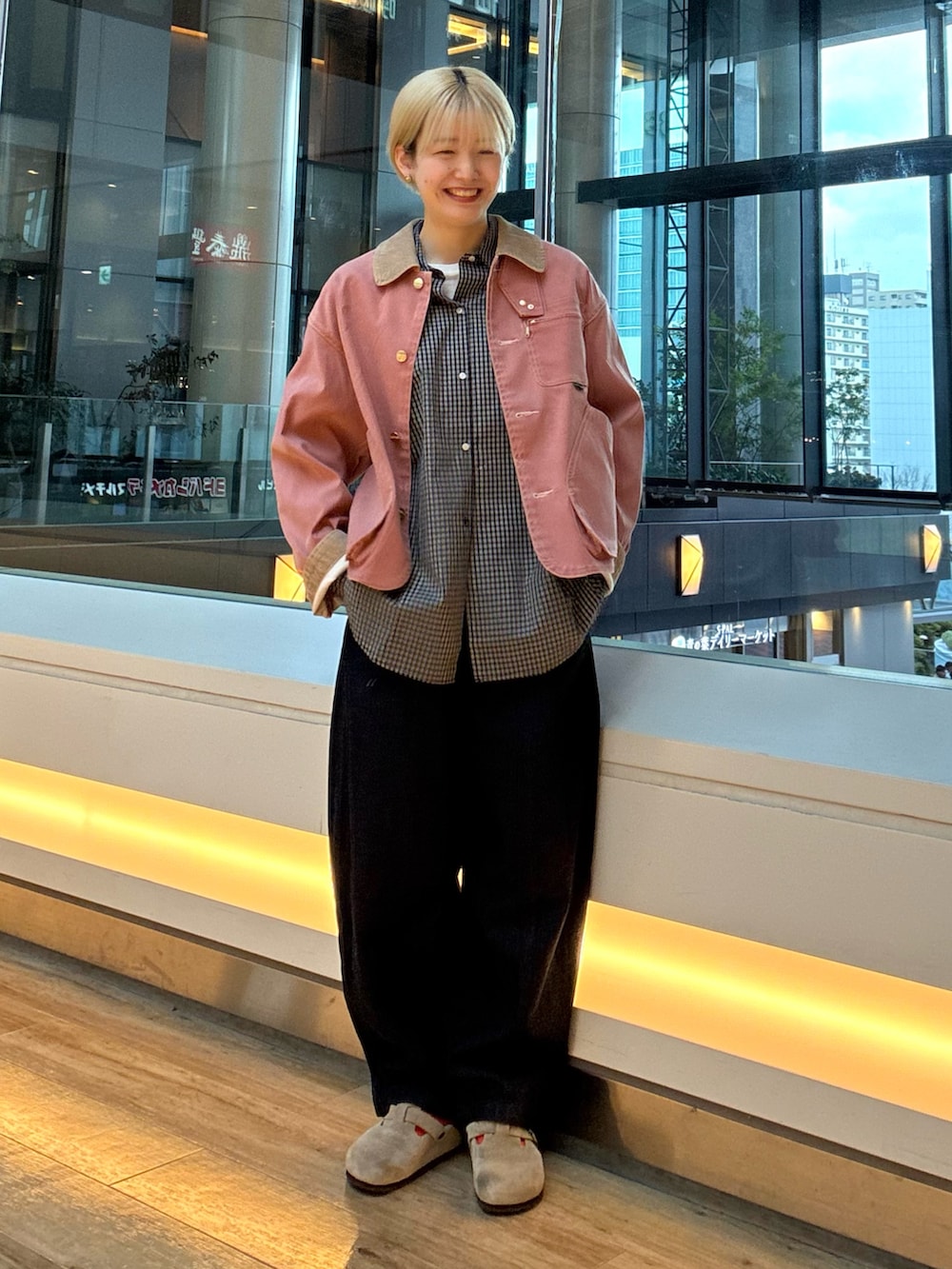 刺繍チェックシャツは、春カラーで、オーバーサイズでベストやスウェットのレイヤードスタイルにも大活躍ですね!