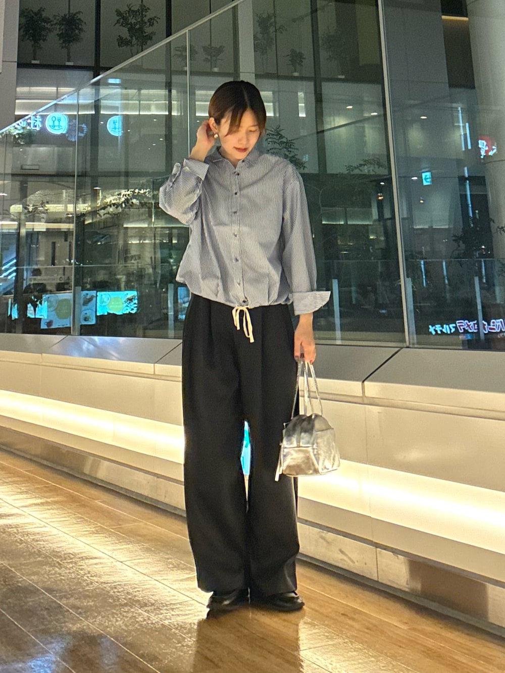 ドロストがついてるシャツは珍しいですよね!形も新しくて、周りと被らないようなこなれ感がでますね😏
