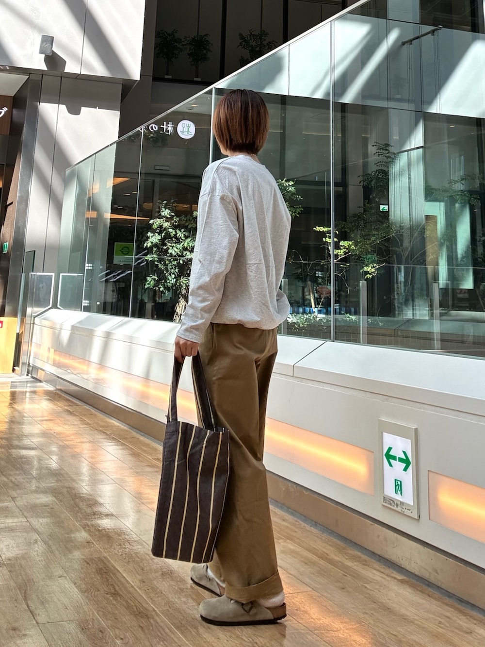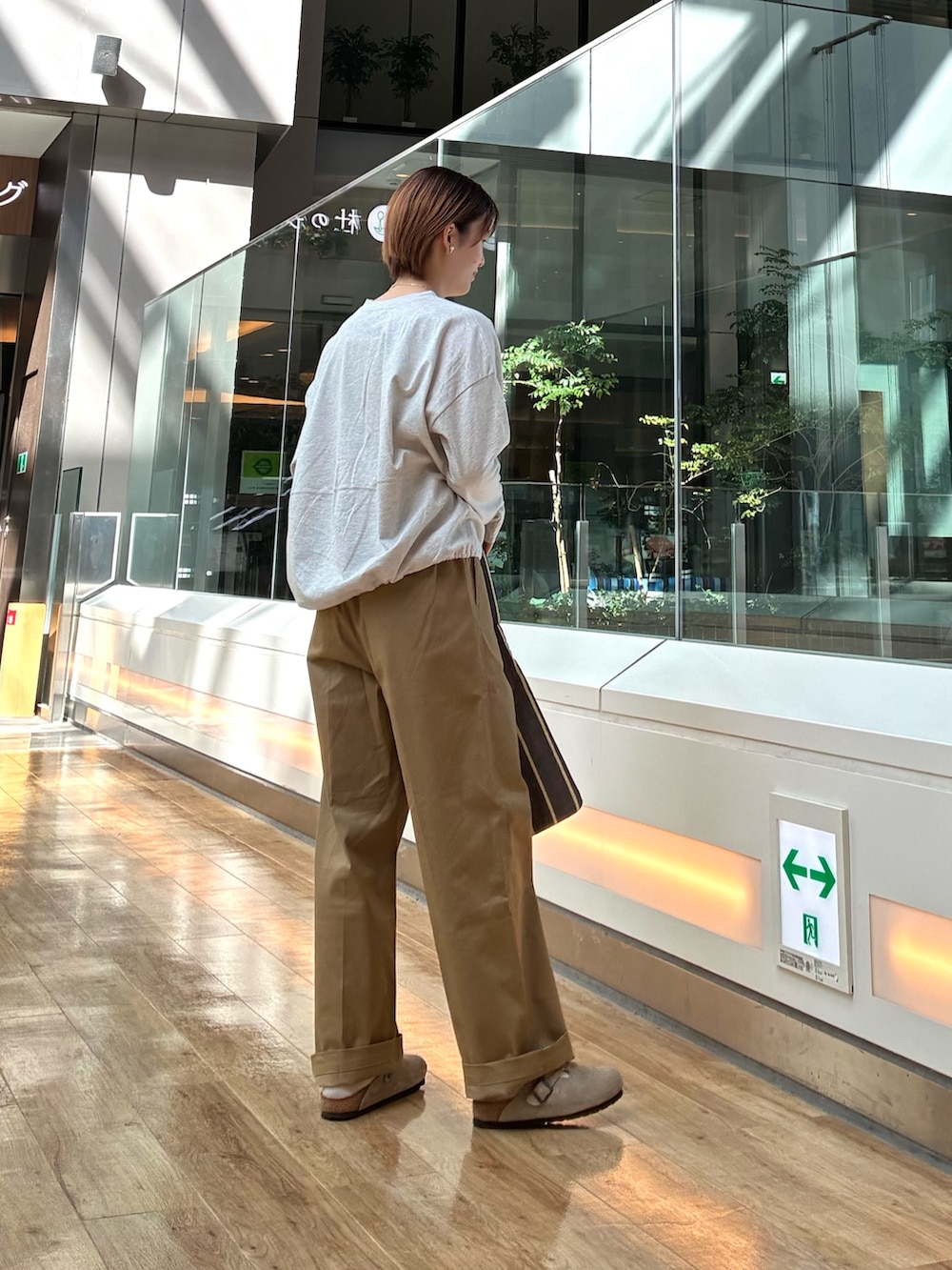 フォークのチノパンは、硬すぎず履きやすいですし、ゆったりとしていて、ストレートに落ちる感じの形で良いです!!