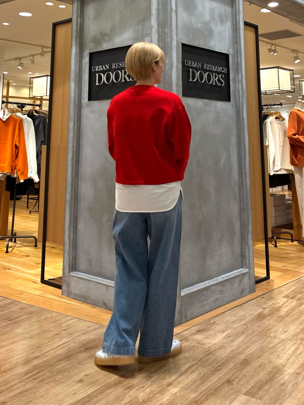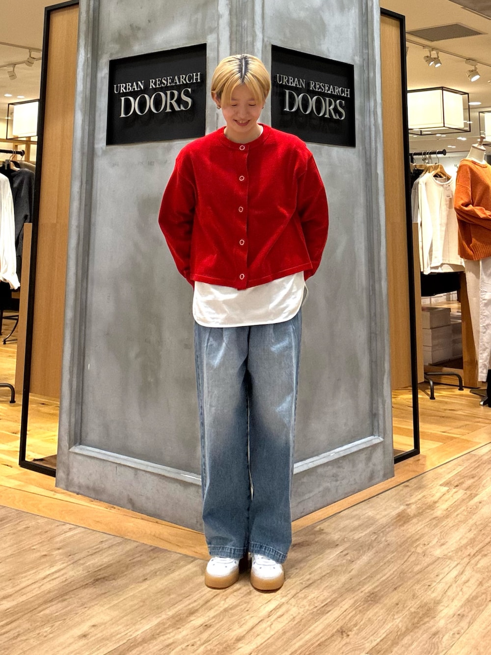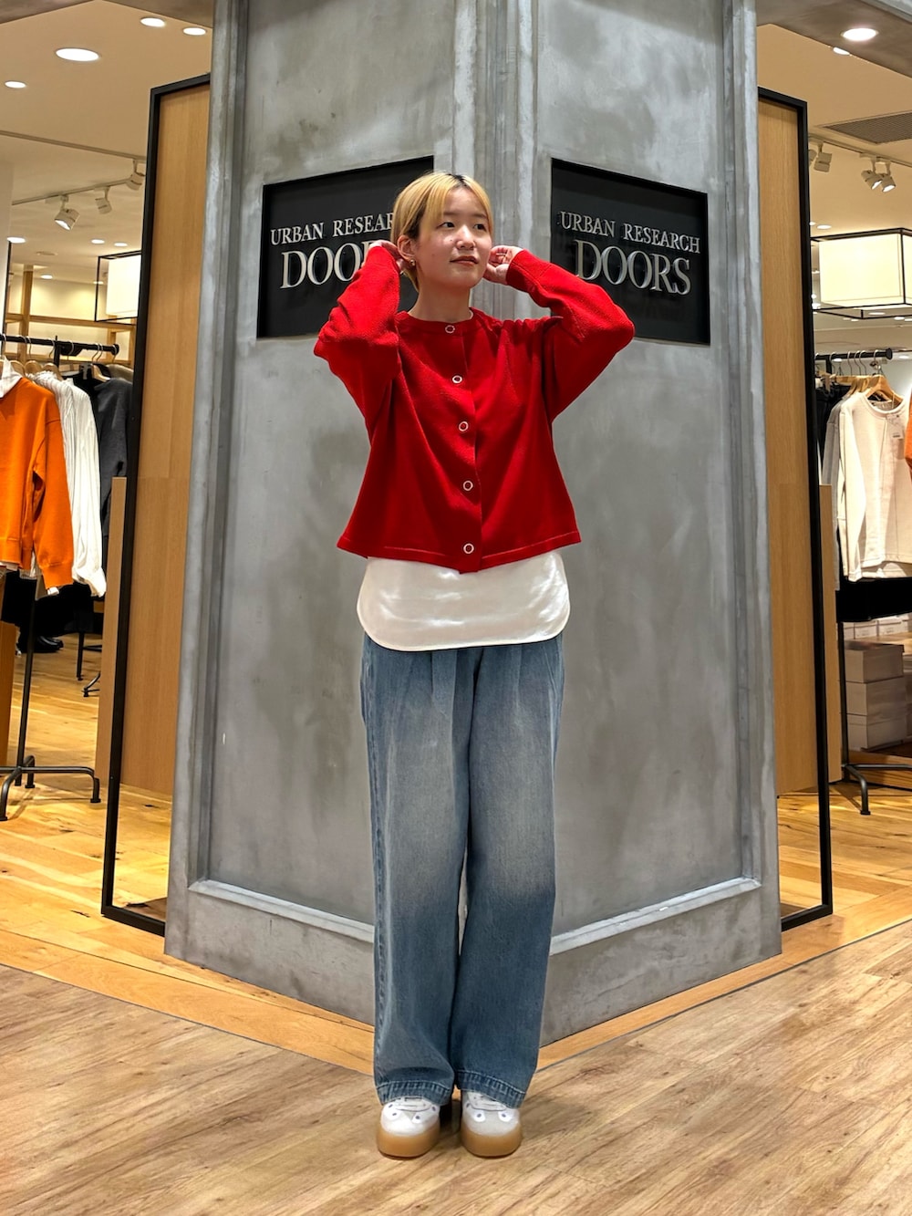 200日ニットのカーディガンははっきりとした赤!!で、存在感があって良いですよね!!