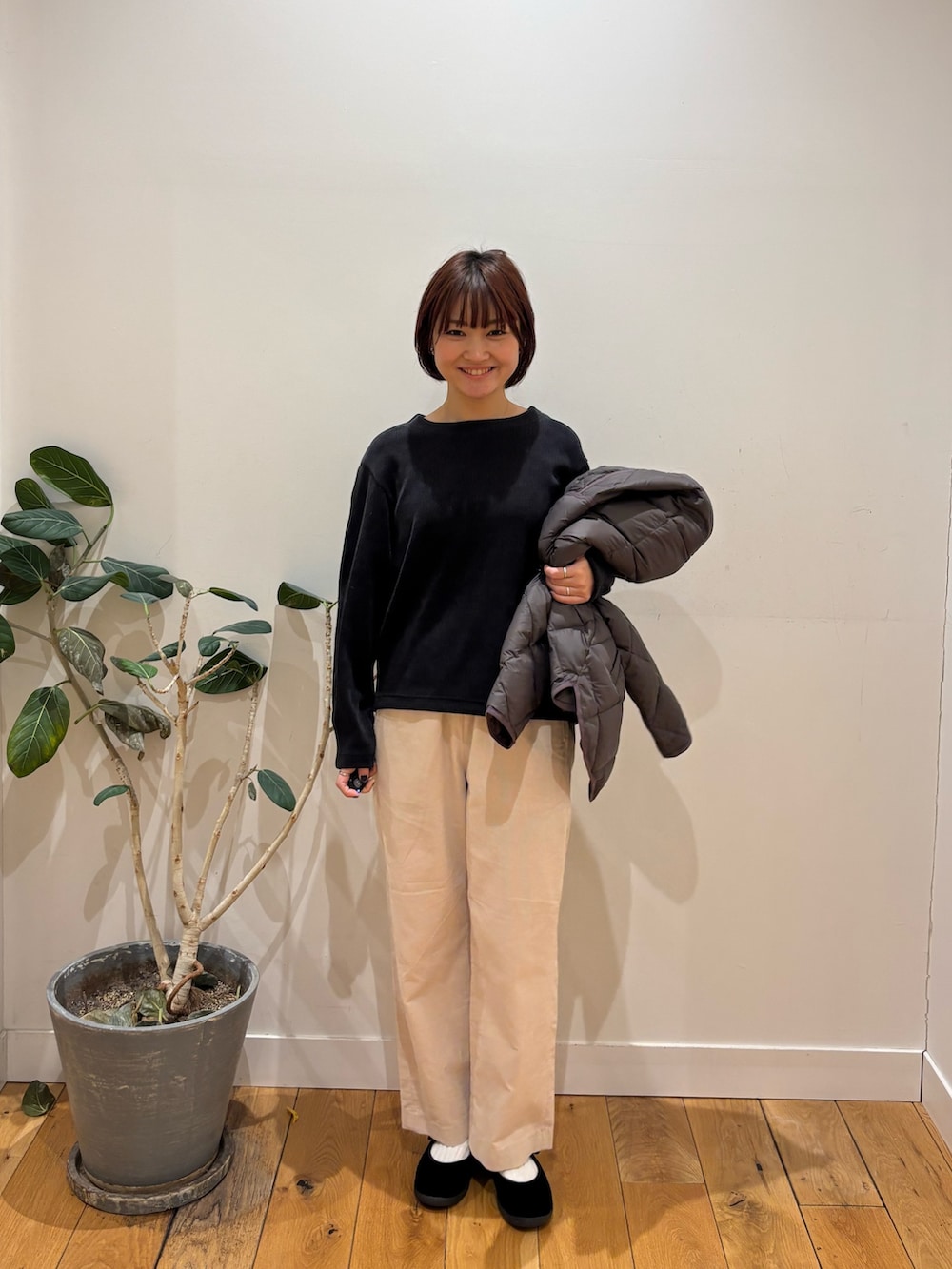 トップスに着ているコクーンニットはほどよい薄さなので厚着が苦手な方に特におすすめできます!