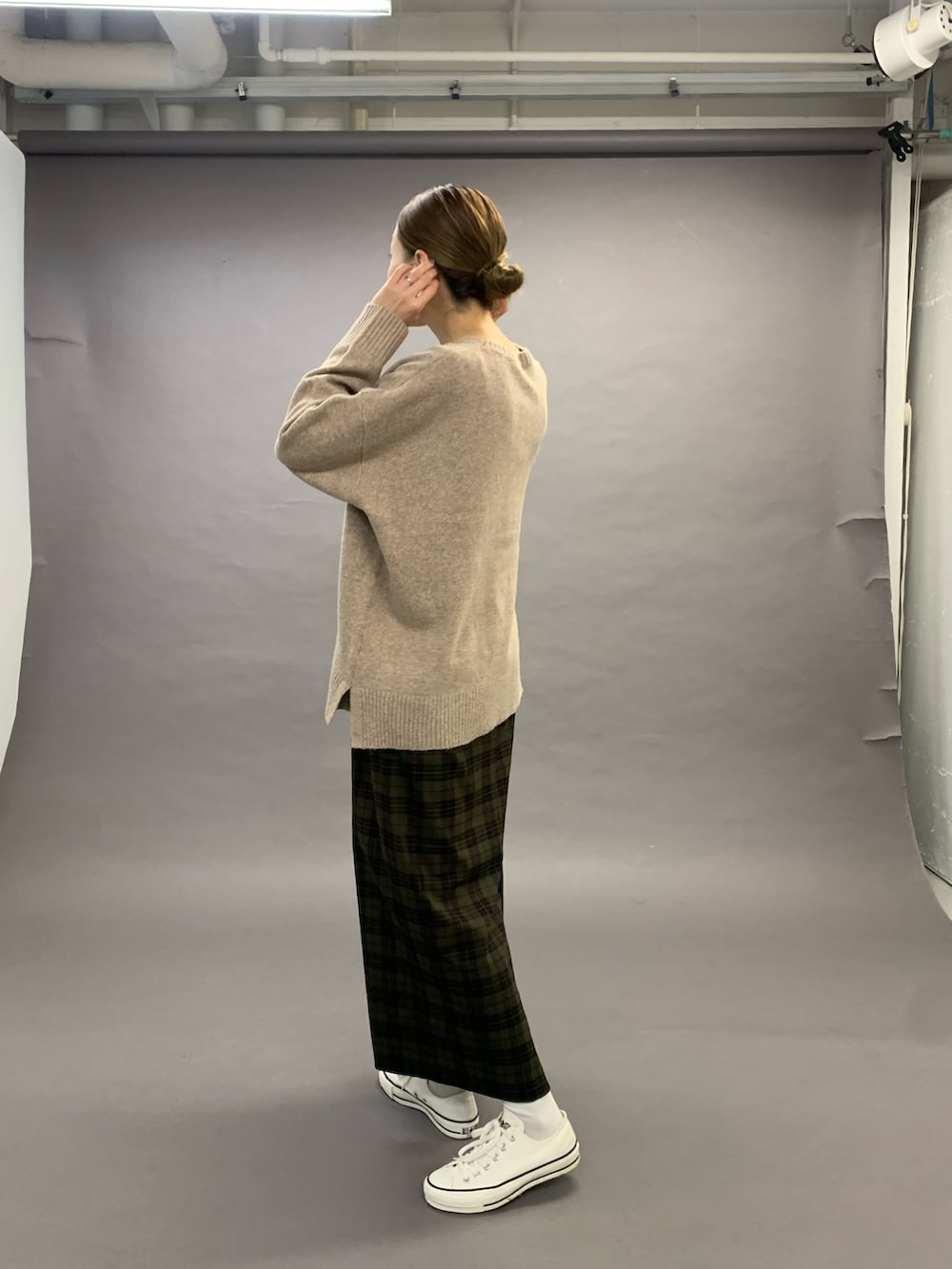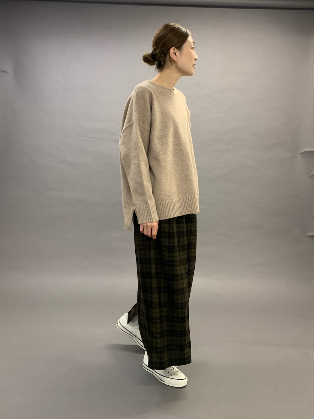 トップスのニットは、腰まで長さがあり両サイドにはスリットが入ったチュニックニットです。