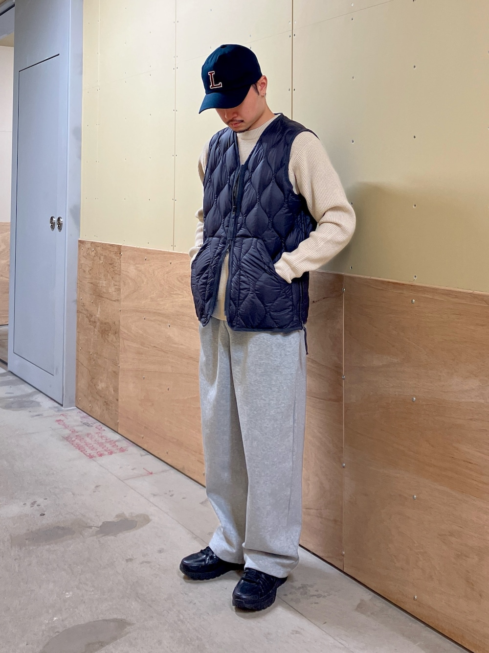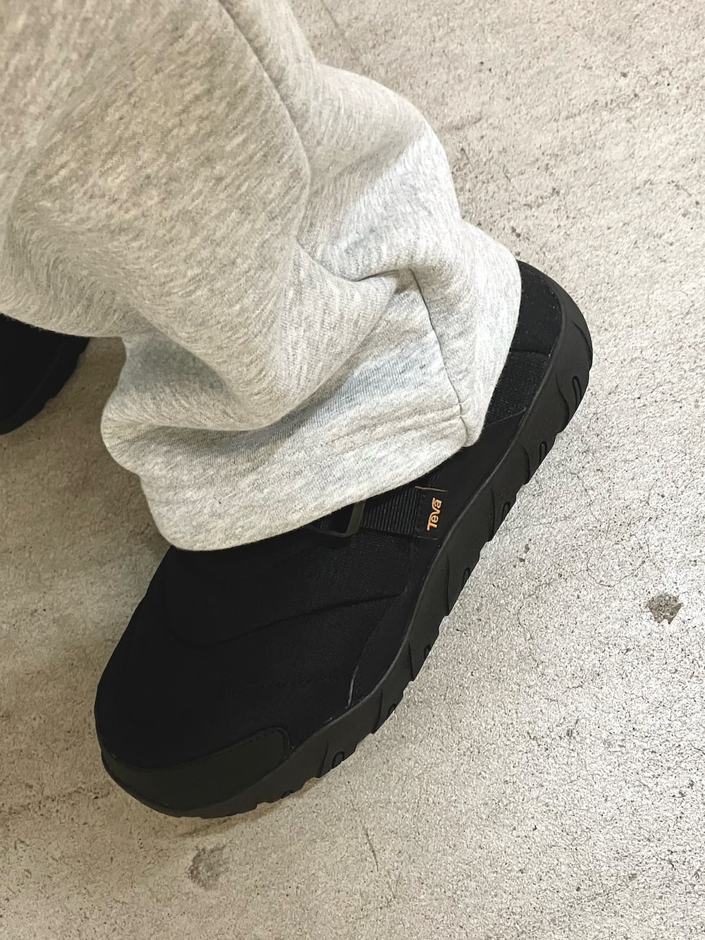 パンツはEKALのクイックドライのスウェットと足元にはTevaのREEMBER CAMP。