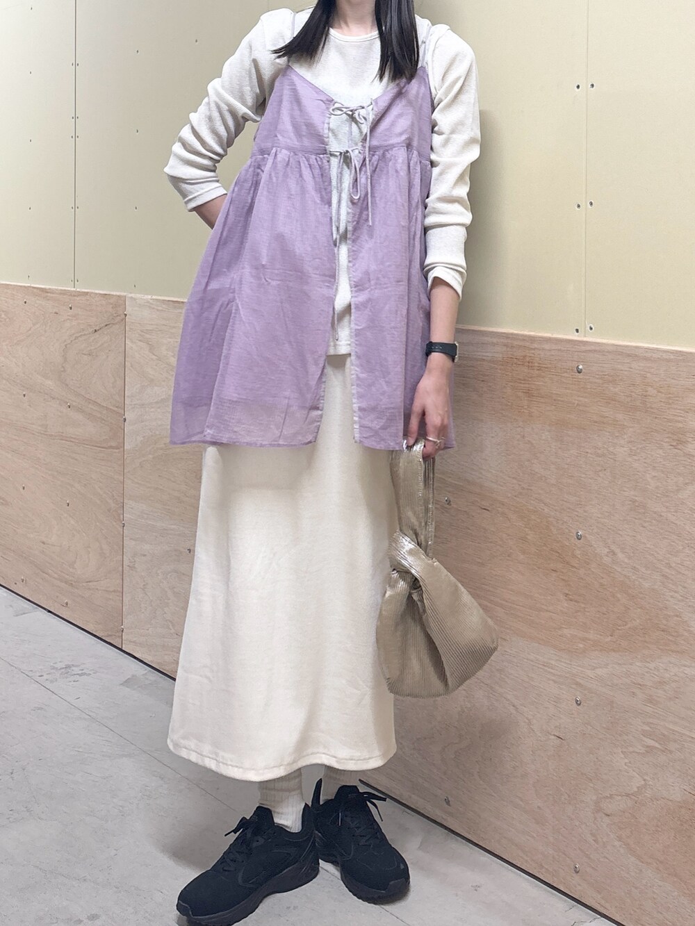 ベストとはまた違った雰囲気になるのでいつものトップスに合わせてもひと味違うスタイリングが楽しめます✨
