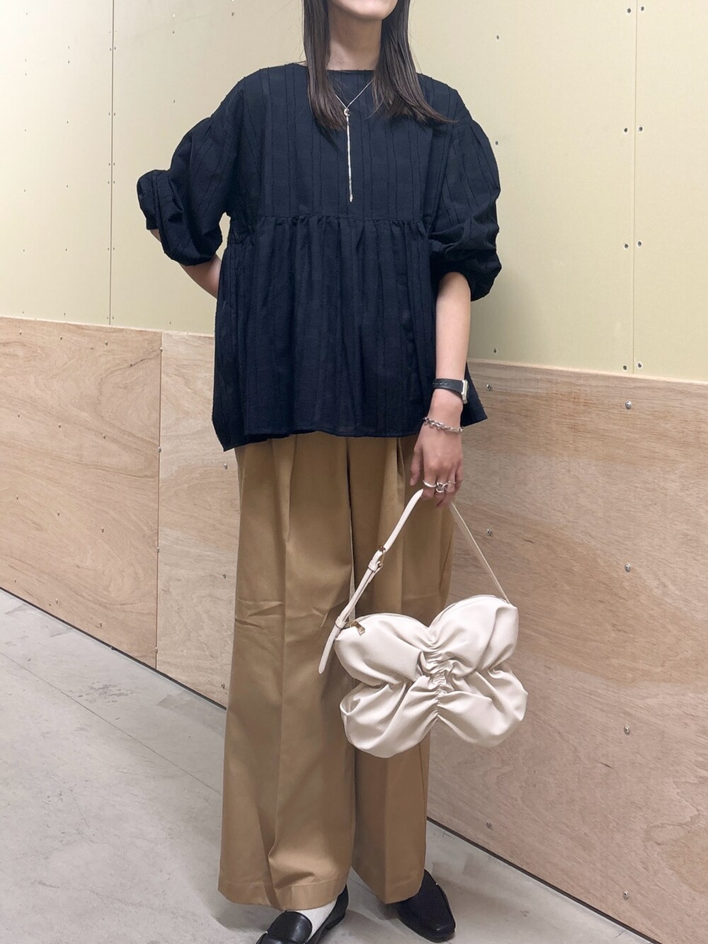 ハイウエストのワイドシルエットのチノパンツになります✨