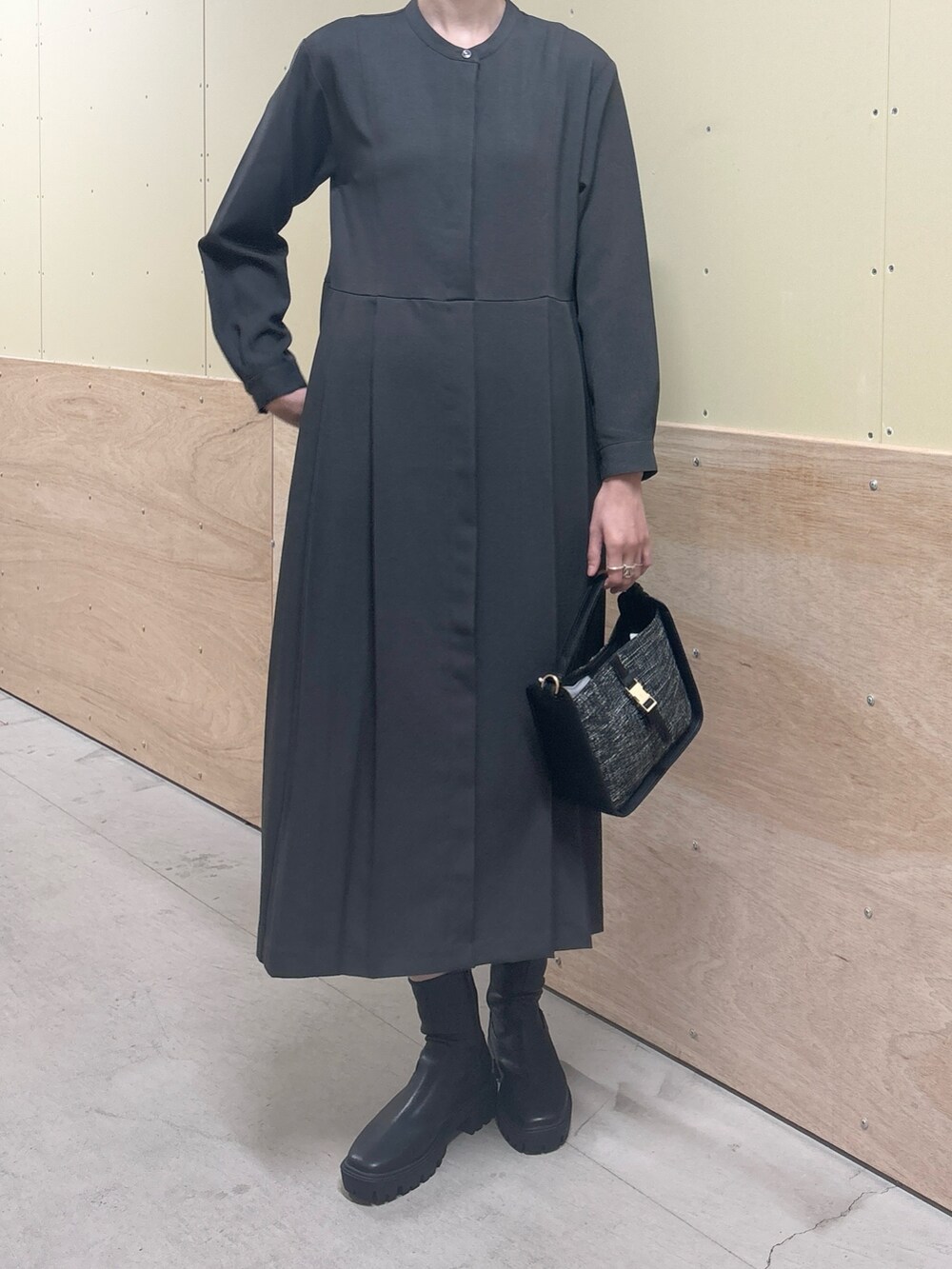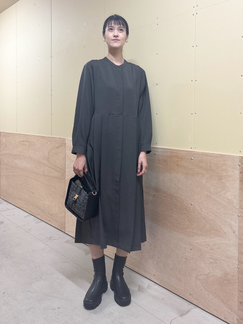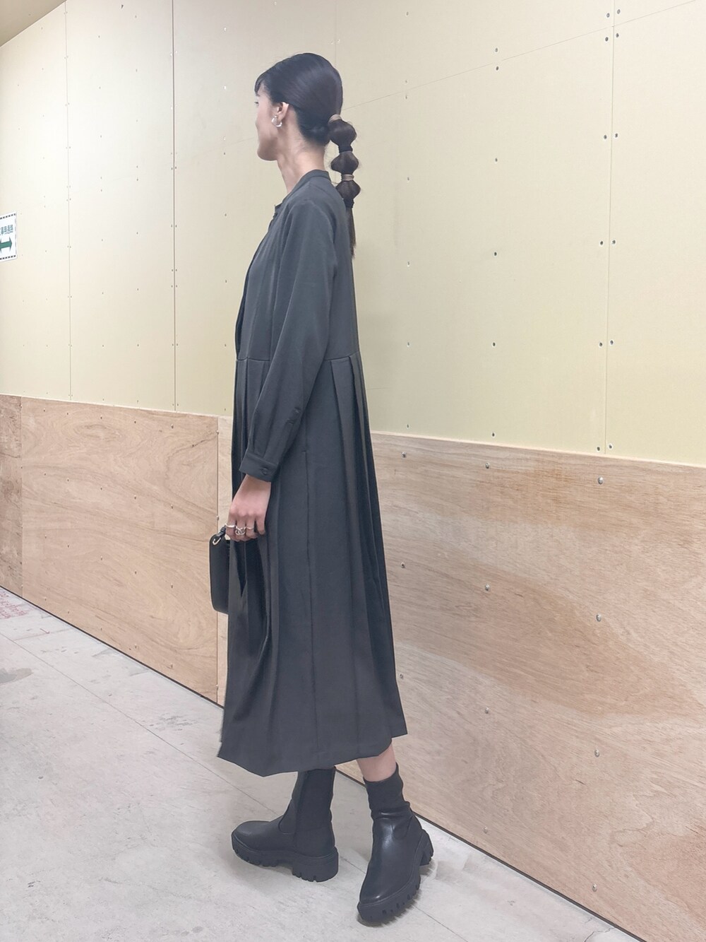 ワンピースとして着用したかったので少し短いですがミドルブーツを合わせて足元が見えすぎないように意識しました☺️