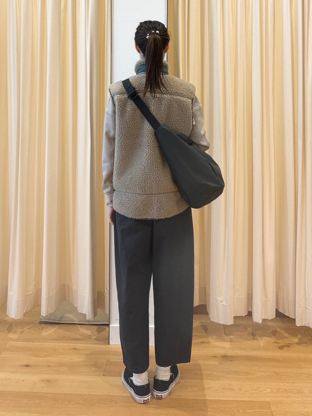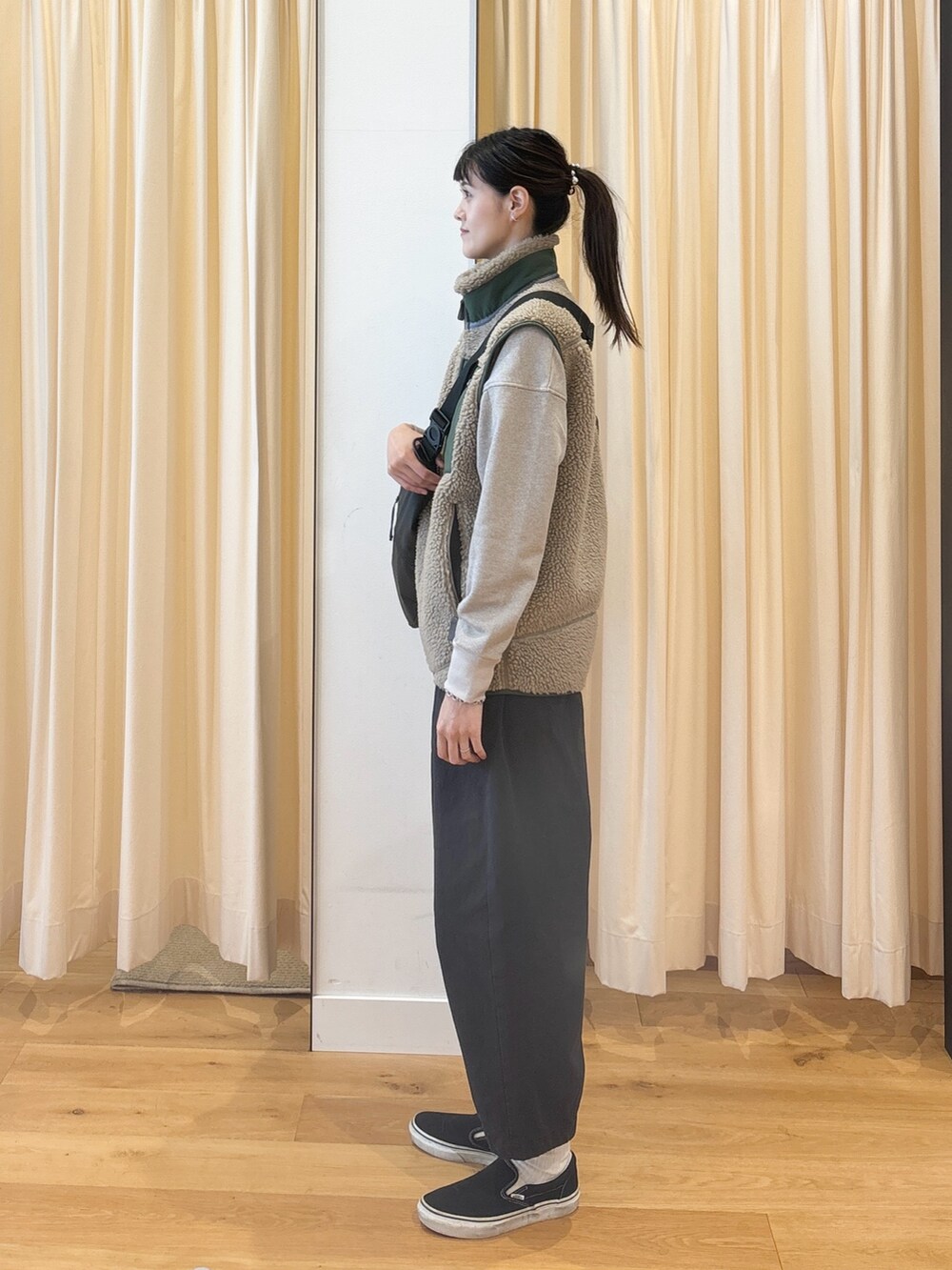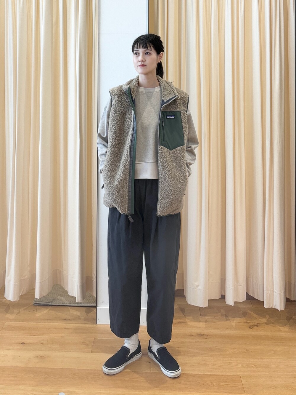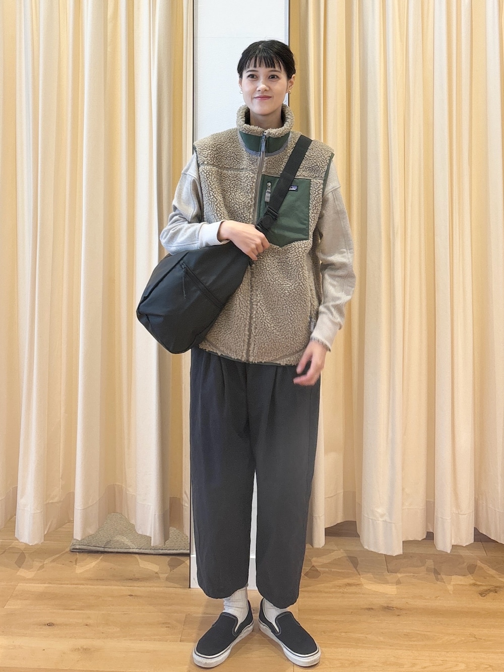 VESTは着回しがききますし、ワンポイントになってJKTよりも着やすいように感じます。