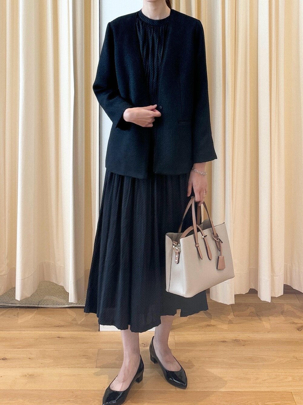 身長170cmが着用すると足首はしっかり見えますが、パンプスで合わせるとそこまで気にならないように感じます。