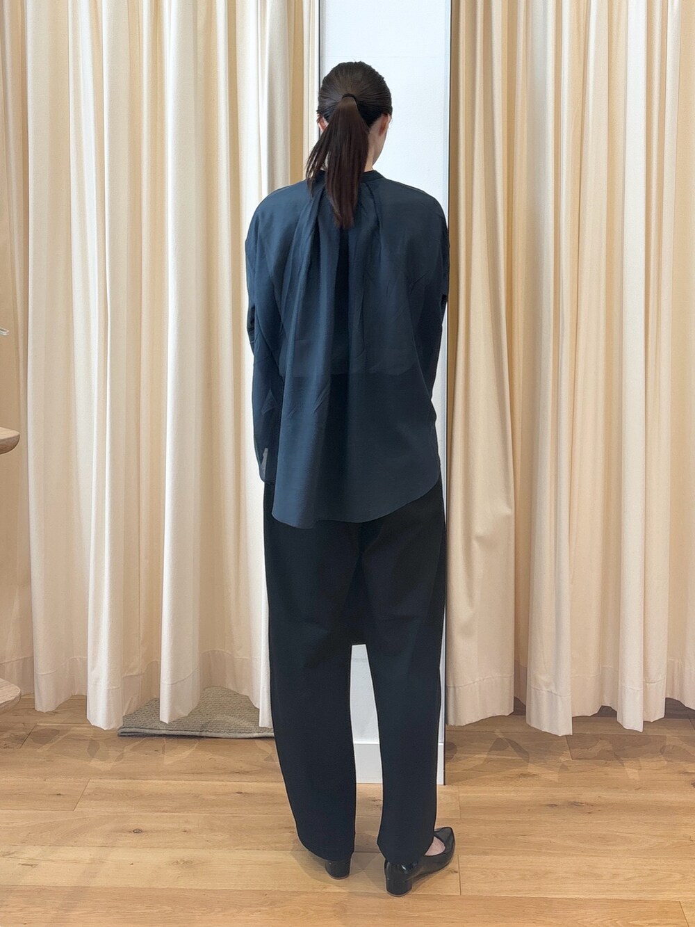 着回し力の高いベーシックなバンドカラーシャツでさり気ない透け感が涼しげなアイテム。