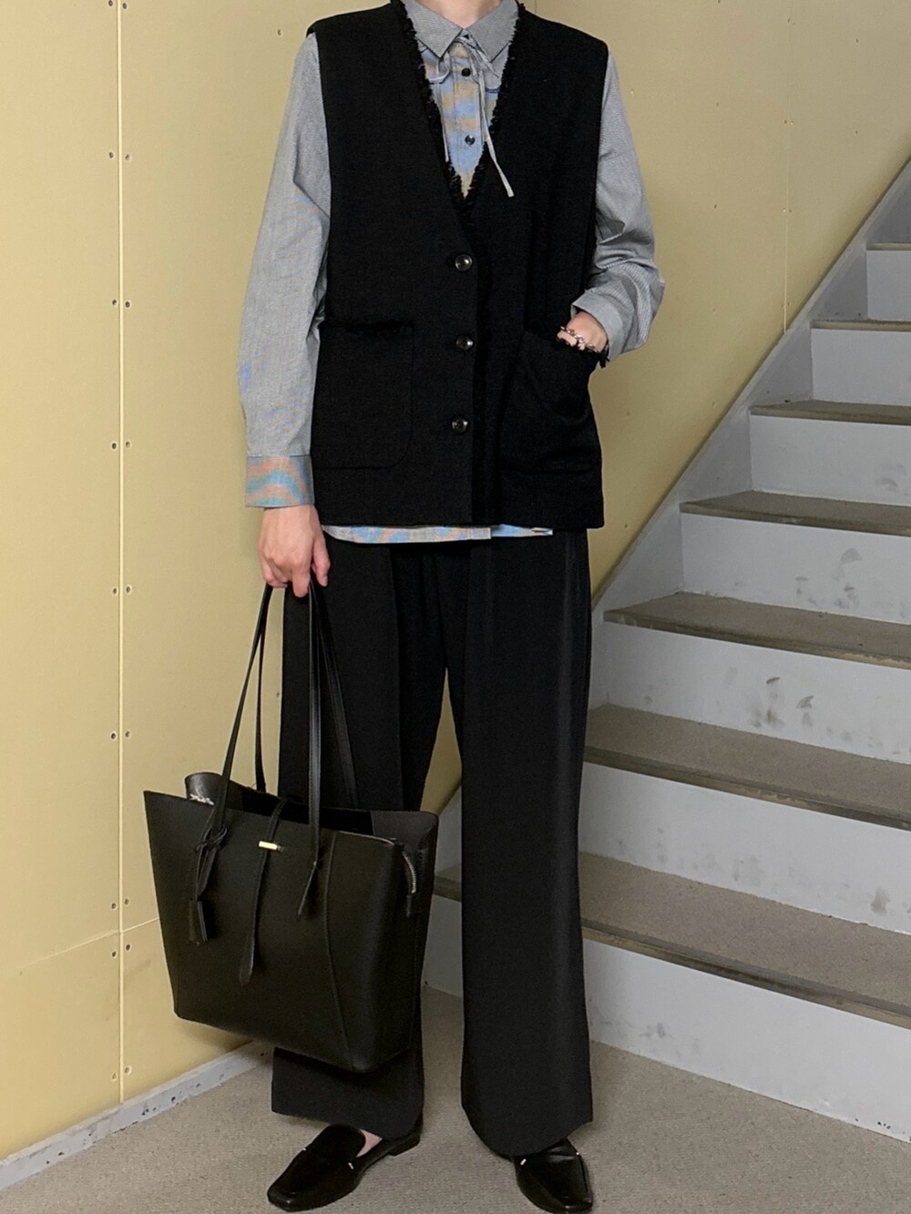 ジャケットのインナーにはもちろん、スウェットやニットなどに合わせて甘さを抑えたカジュアルコーデにもオススメです☺️