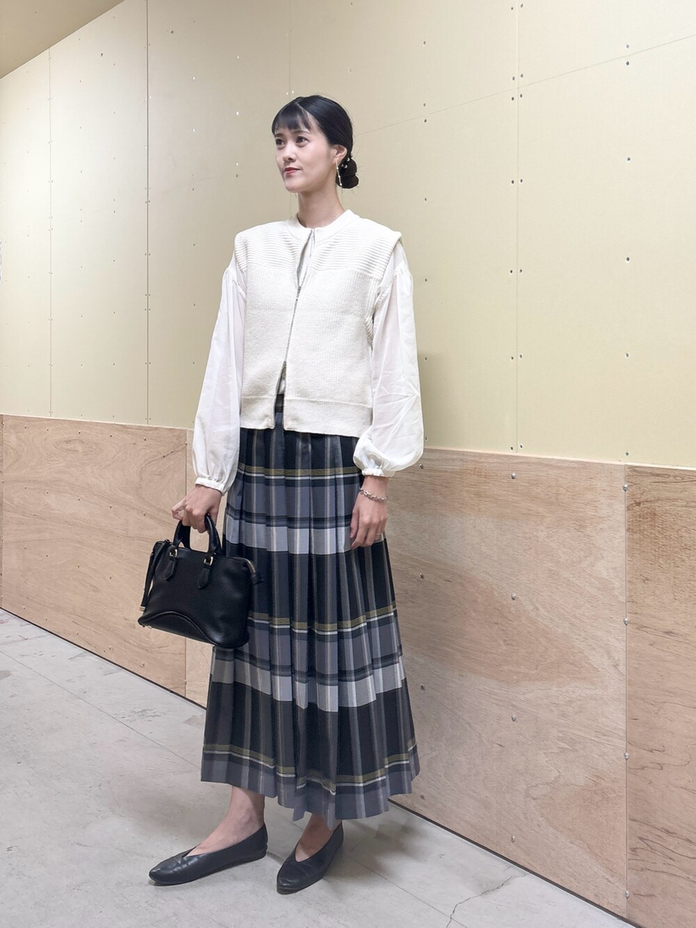 オーガンジーシャツで抜け感を出してベストで締めてみました。