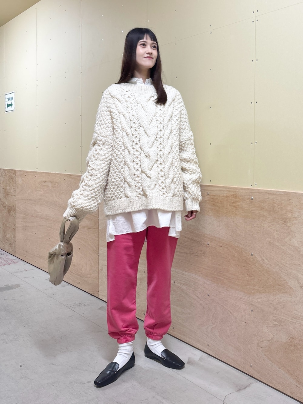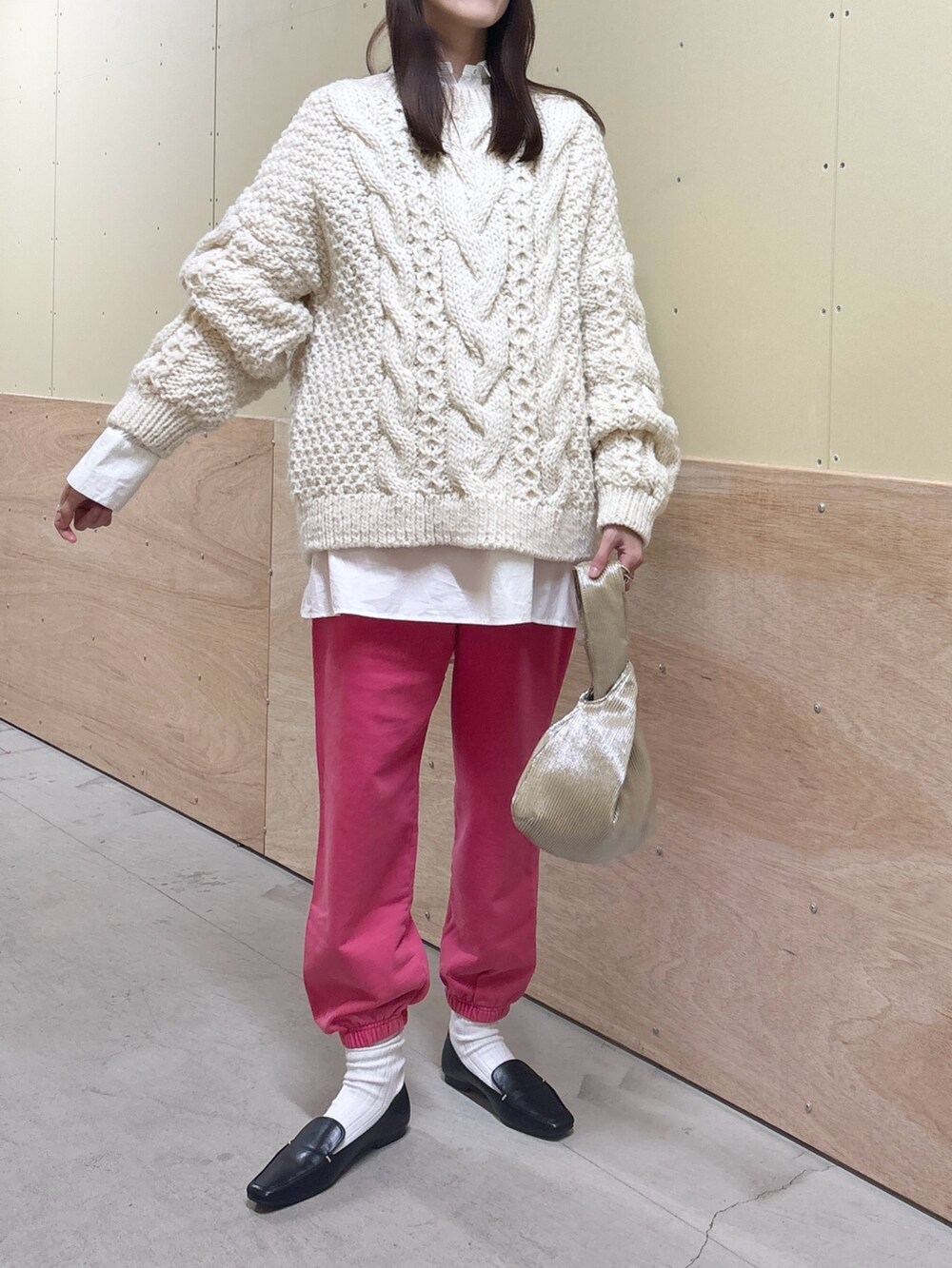 ローゲージのニットにチュニック丈のブラウスを合わせてスウェット以外を女性らしいスタイリングで組むとカジュアルすぎないで着用できる気がします🙌