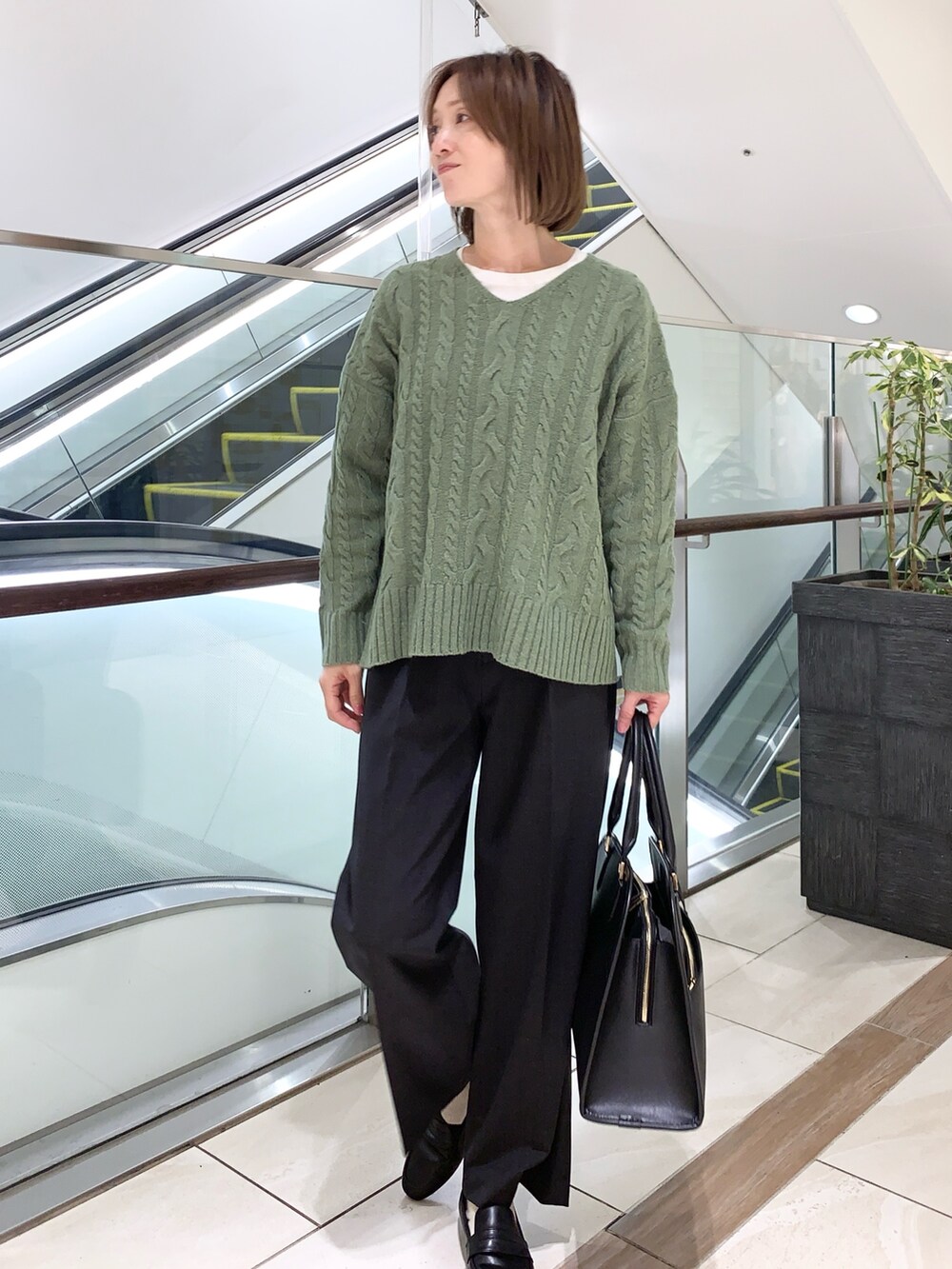 全体の程よい緩さと、Vネックでレイヤードもしやすく、カジュアル使いもできます!