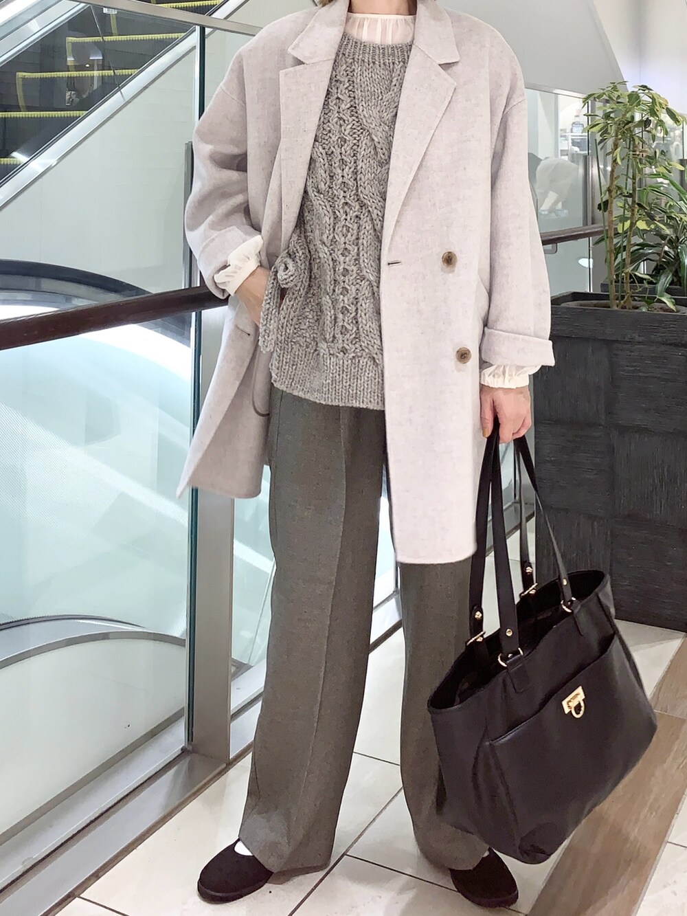 ビッグジャケット風に着られる、裏地なしコートです!店頭では裏地なしコートの需要をかなり感じてます。カーディガンやジャケットのように着られるコートは、おしゃれ度も高くきちんと見えもするのでオンオフ問わず使えそうです😊😊